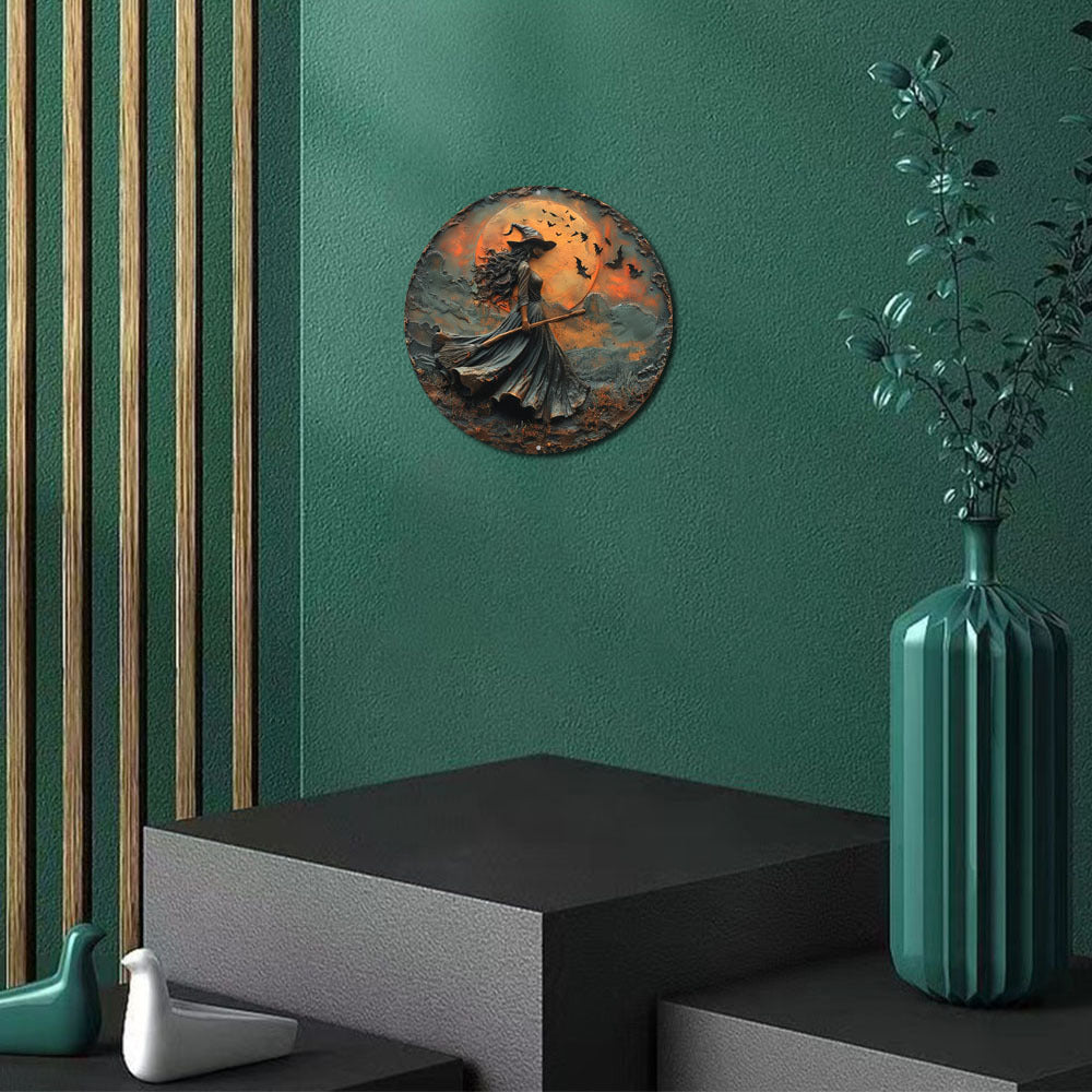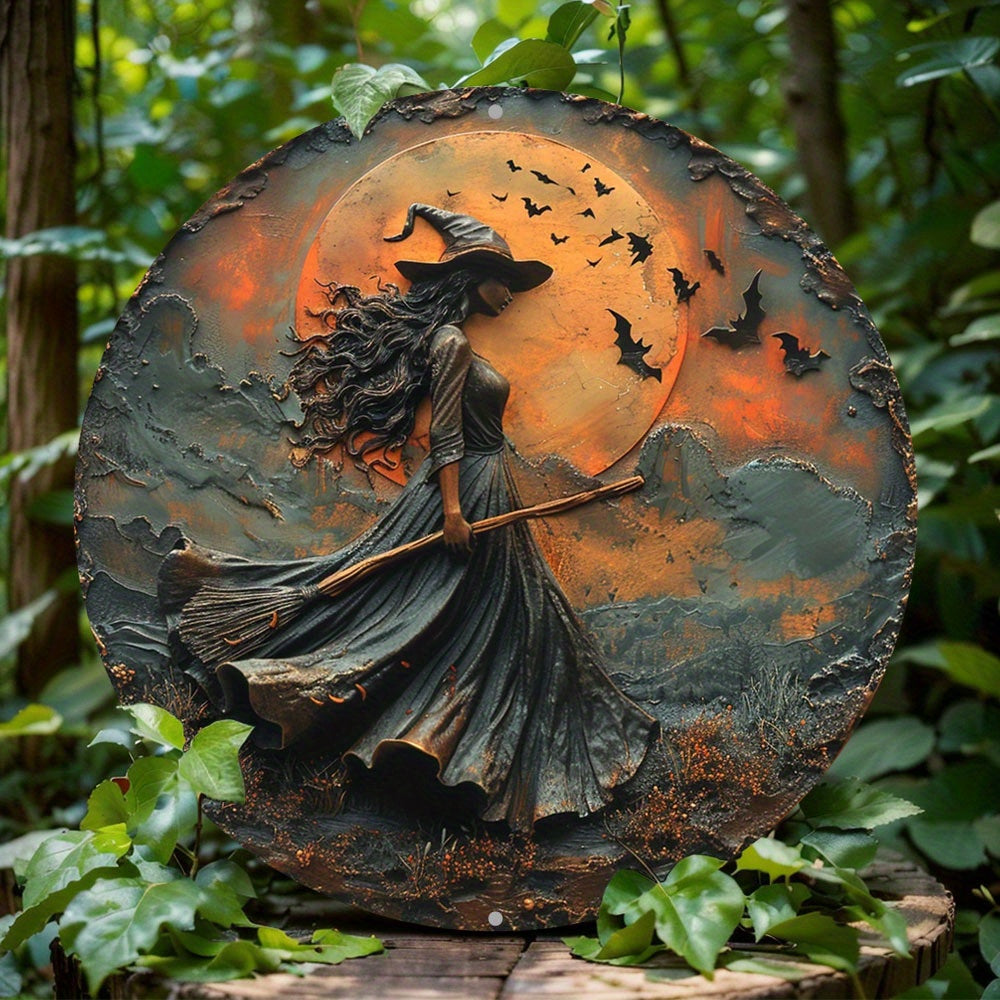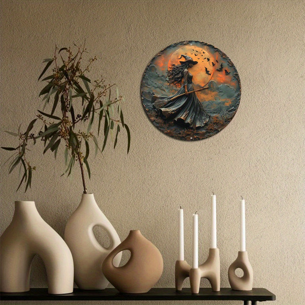 0207ba 1pc 8x8 Inch Round Aluminum Flat Sign - Unique 2D Gothic Witch Themed Decoration for Office Room, Home Door, Wall Art Decor - Compact Size, Durable, Lightweight, Perfect Holiday Gift Idea