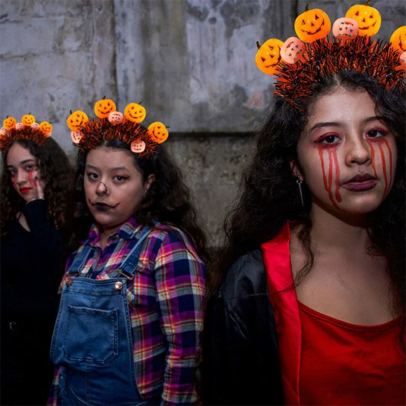 0207ba Export Large Goods Surplus Goods Pumpkin Lamp Halloween Dress up Pumpkin Headdress Hair Multi-Mode Glowing Headdress Hoop