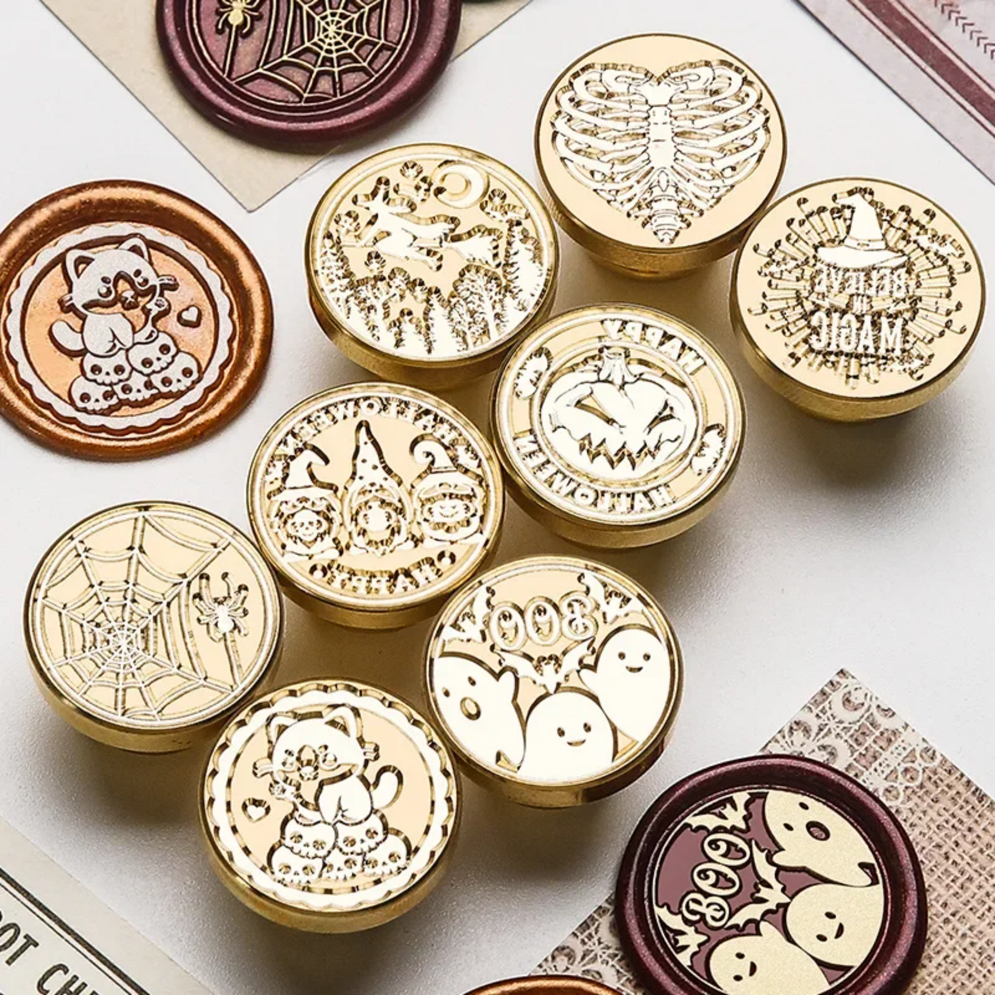 0709BA 2.5CM Wax Stamp for Festival Happy Halloween Copper Head Wedding Stamp Sealing Tool Witch Broom Skull Bat Sealing Head HCZ041