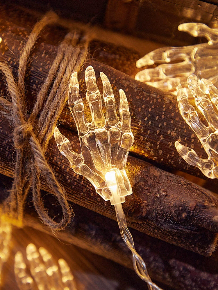 0709BA Halloween Decorative Skeleton Palm Small Lighting Chain Shock Props Ghost Hand Scene Layout Pendant Ghost Pumpkin Ornaments