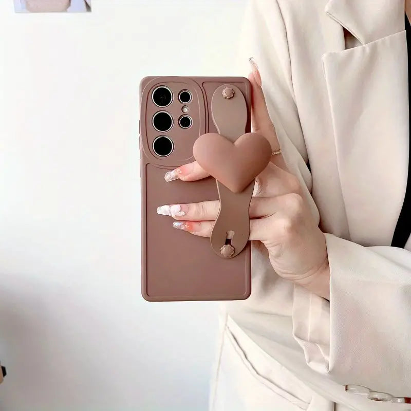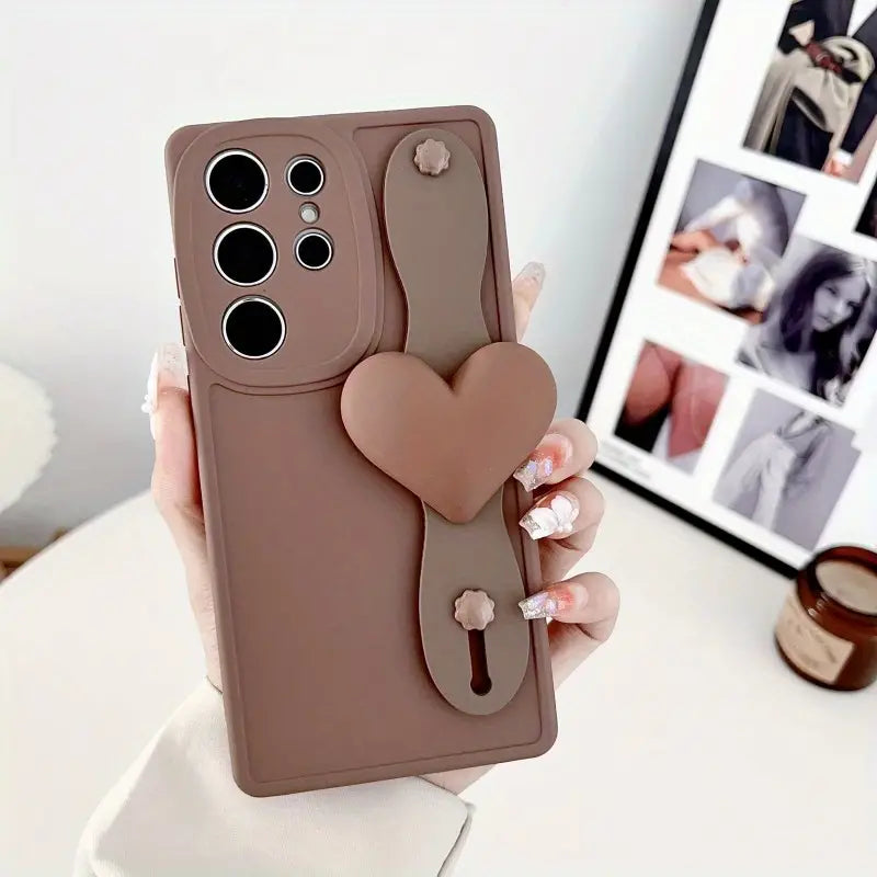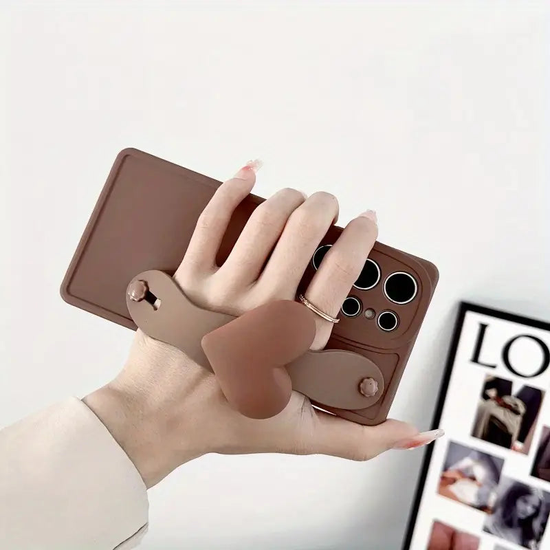 The 3D Love Brown Khaki Wrist Strap Phone Case is designed for those who appreciate both style and convenience. Crafted in a warm brown khaki tone, this case features a charming 3D heart design that adds a subtle, romantic flair.