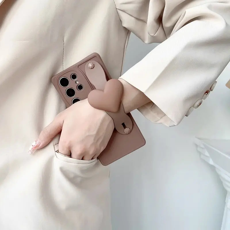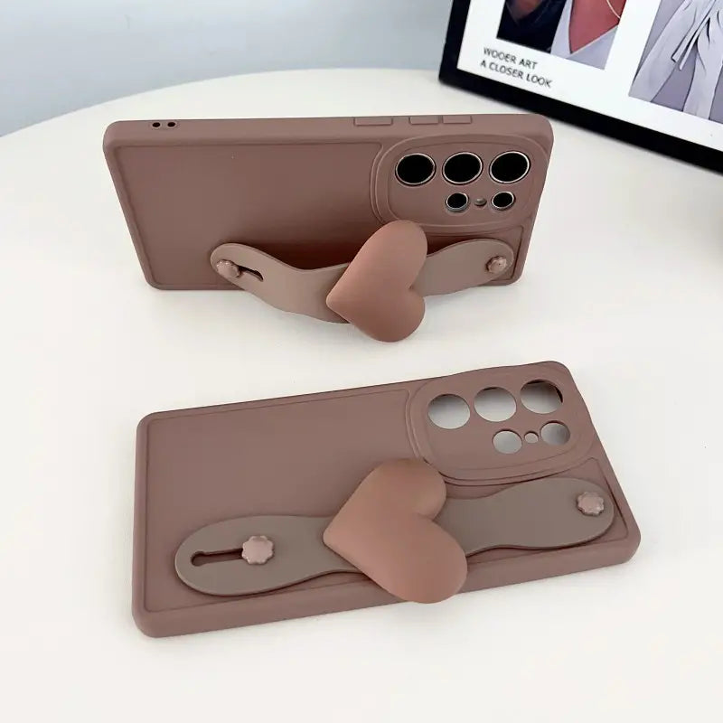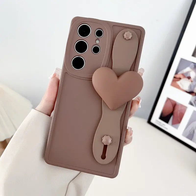 3D Love Brown Khaki Wrist Strap Phone Case - Samsung