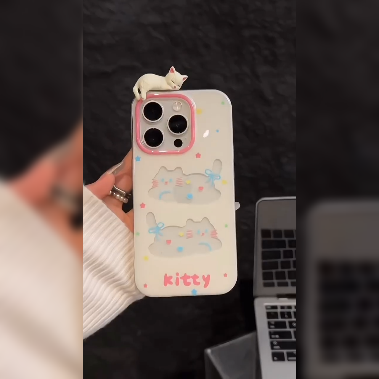 This Adorable Kitty Cat Phone Case combines style, cuteness, and practicality in one charming accessory. With a playful pastel design featuring cute cats, this case adds a fun and cozy vibe to your phone.