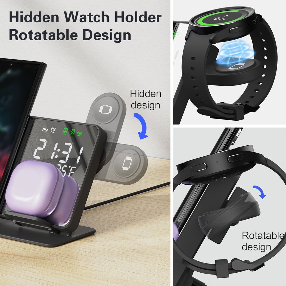 Advanced 4-in-1 Wireless Charger with Alarm Clock