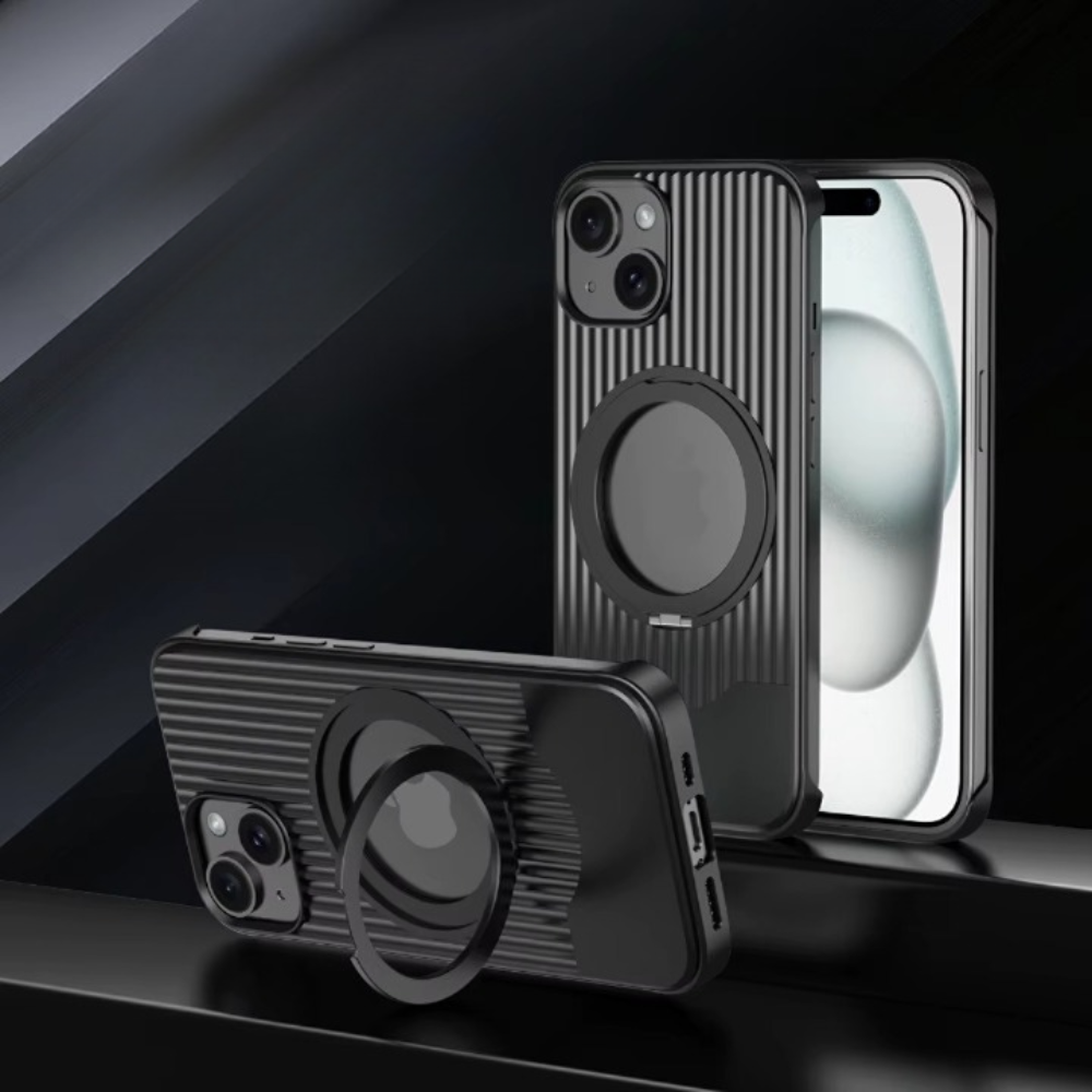 Designed for durability and functionality, this premium alloy case offers superior protection with a modern, textured design. The built-in ring stand provides an enhanced grip and hands-free convenience, while MagSafe compatibility ensures seamless attachment to accessories. Engineered for a perfect fit, this case blends style and defense effortlessly.