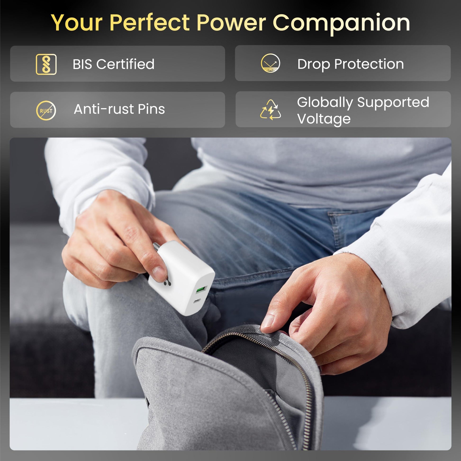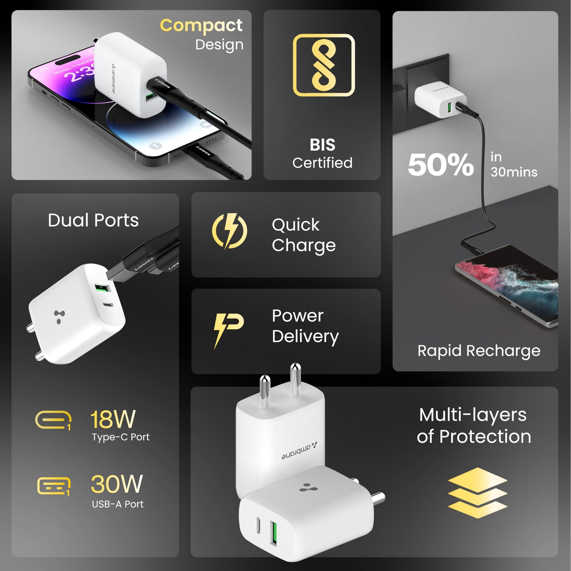 - QC-PD Fast Charging - This charger gives an ultra-fast charging experience with its Power Delivery (PD) and Quick Charge (QC) Technology.