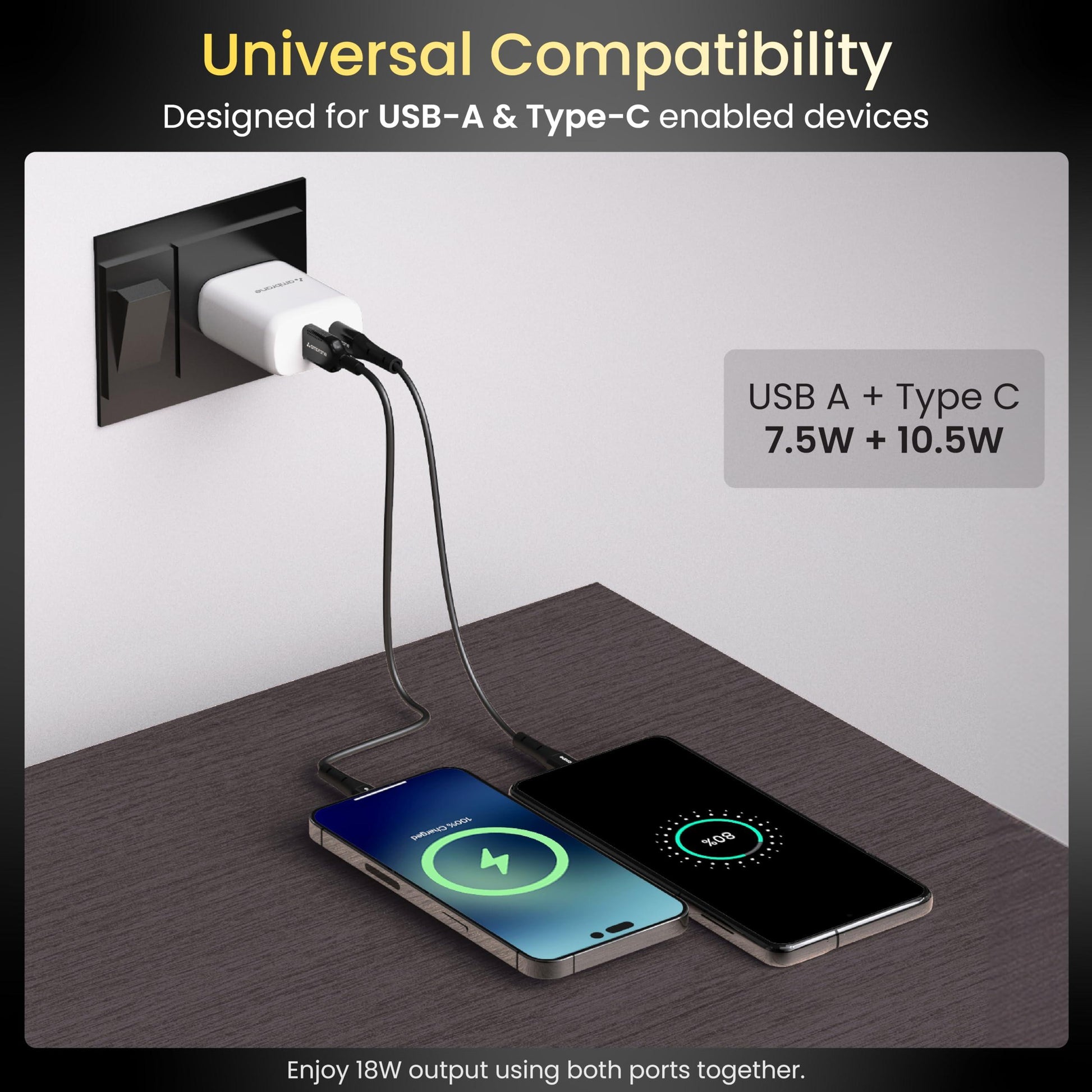 - Dual Output - Enjoy wide compatibility as this charger comes with dual output for your USB and Type-C enabled devices