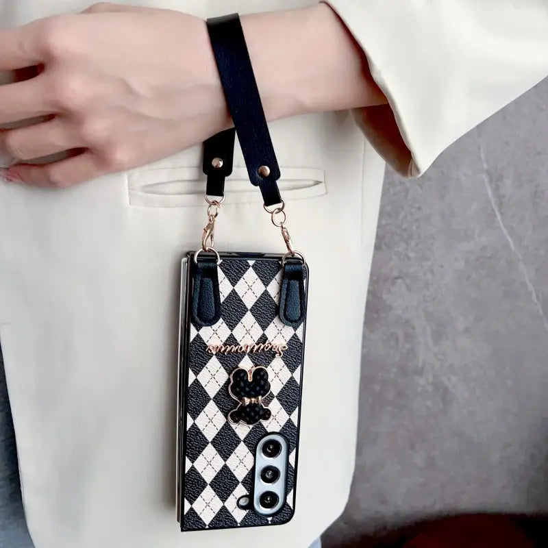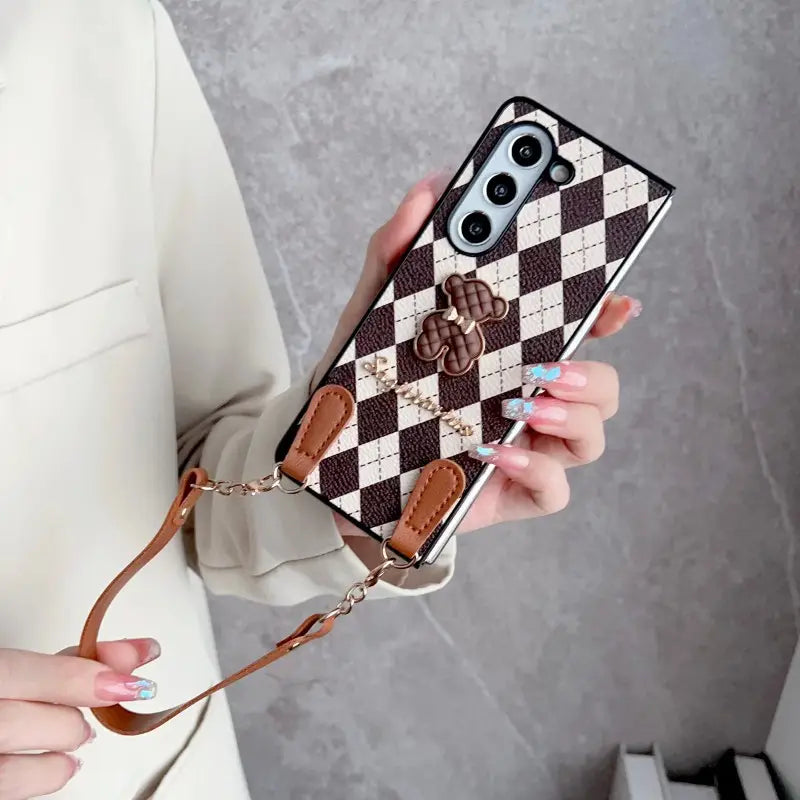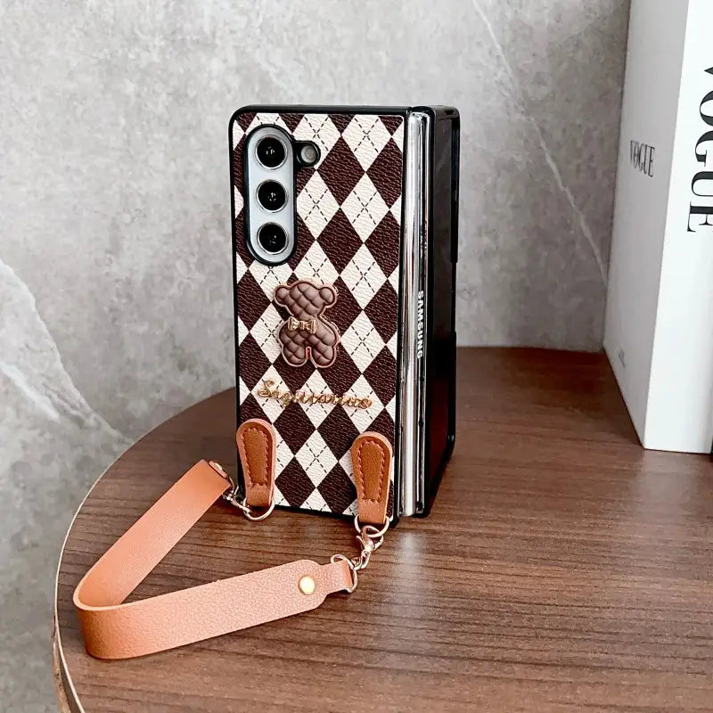 Argyle Charm Teddy Sling Phone Case - Samsung