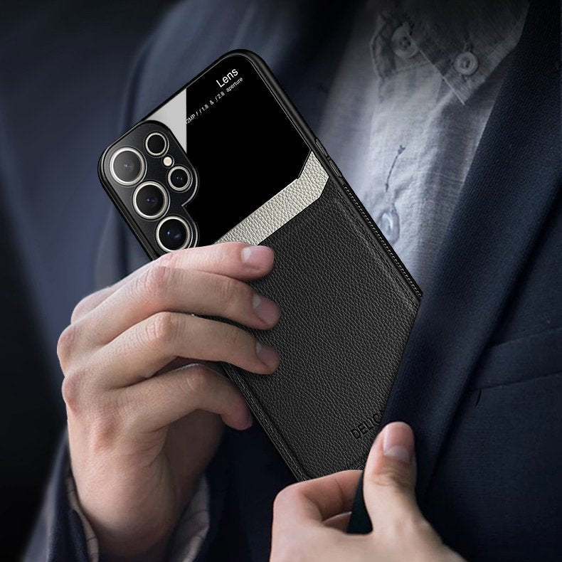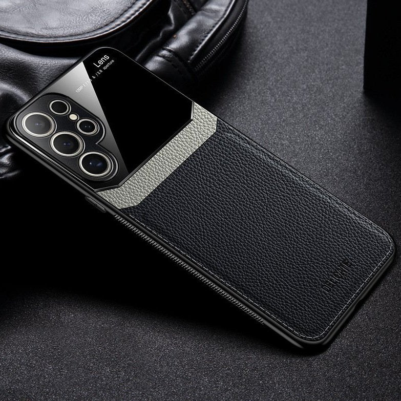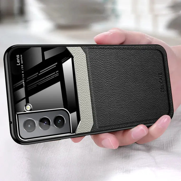 The Aura Glass Lens Stitching Leather Case seamlessly blends elegance, durability, and modern design. This premium case features a stunning stitched leather exterior combined with a sleek glass lens frame, offering a luxurious aesthetic while ensuring robust protection for your device.