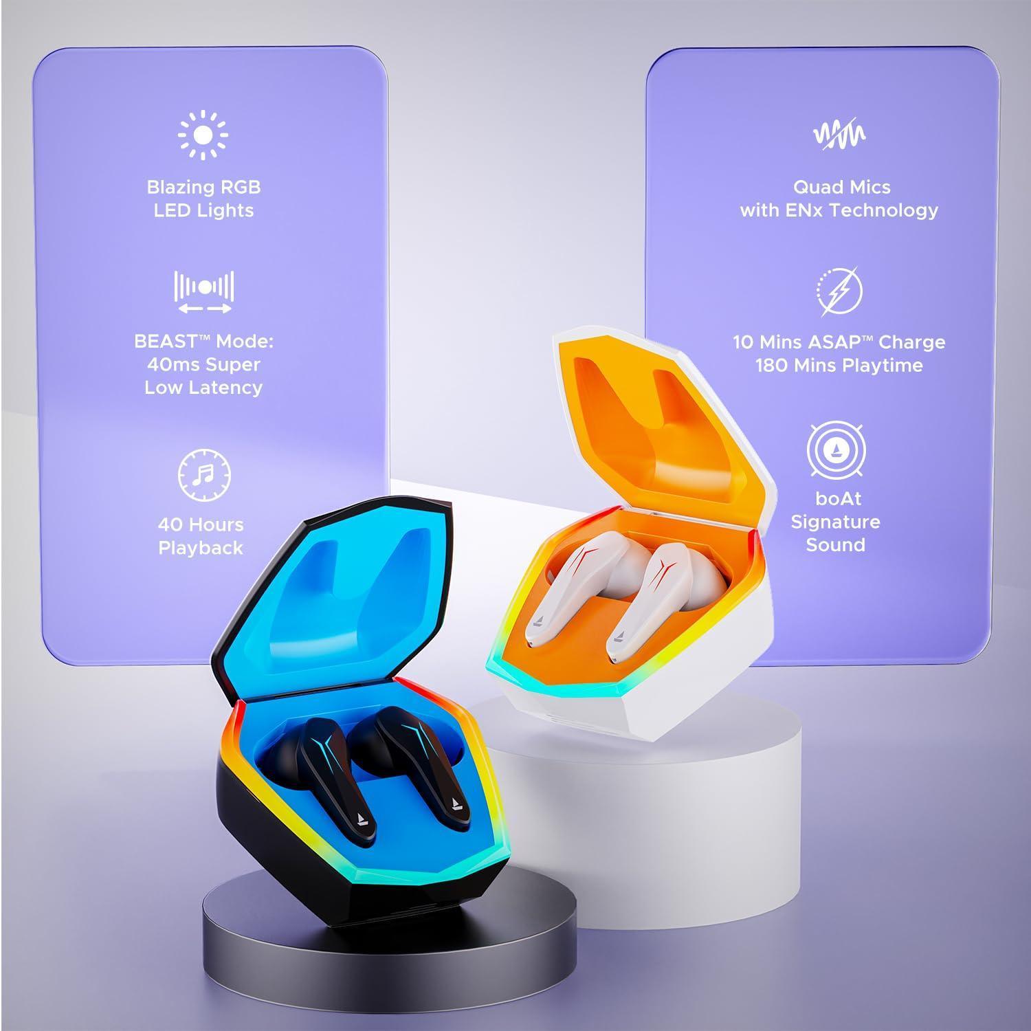 - Blazing- RGB LEDs- Set your surrounding vibes the way you want along with the earbuds equipped with the blazing LEDs.