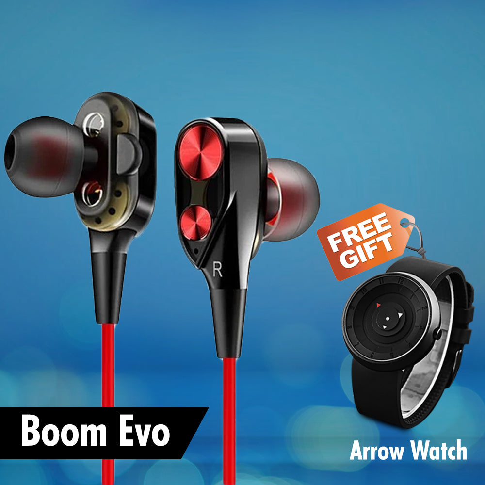 Buy Boom Evo 4D Wired Headphone With Mic ,Get DaZon Arrow Stylish Sports Silicon Wrist Watch