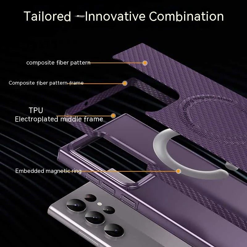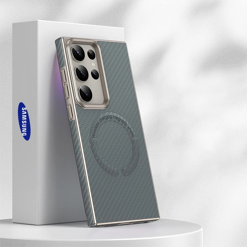 Elevate the protection and style of your Samsung smartphone with our Carbon Fibre Texture Magnetic Suction Case. Crafted with precision and attention to detail, this case is designed to meet the demands of modern users seeking a combination of rugged durability and refined aesthetics.