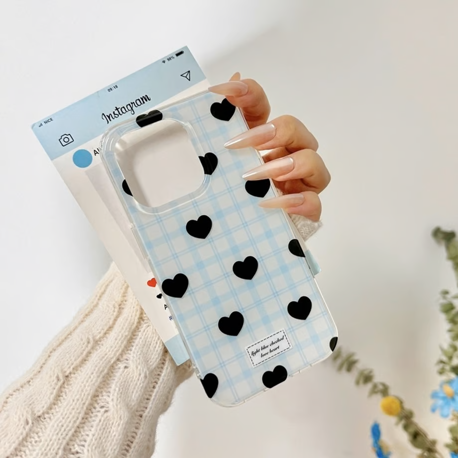 Add a dreamy and stylish touch to your phone with this aesthetic heart-patterned case! Designed for girls who love all things cute and elegant, this case blends a chic checkered background with adorable heart accents for a timeless, trendy look.