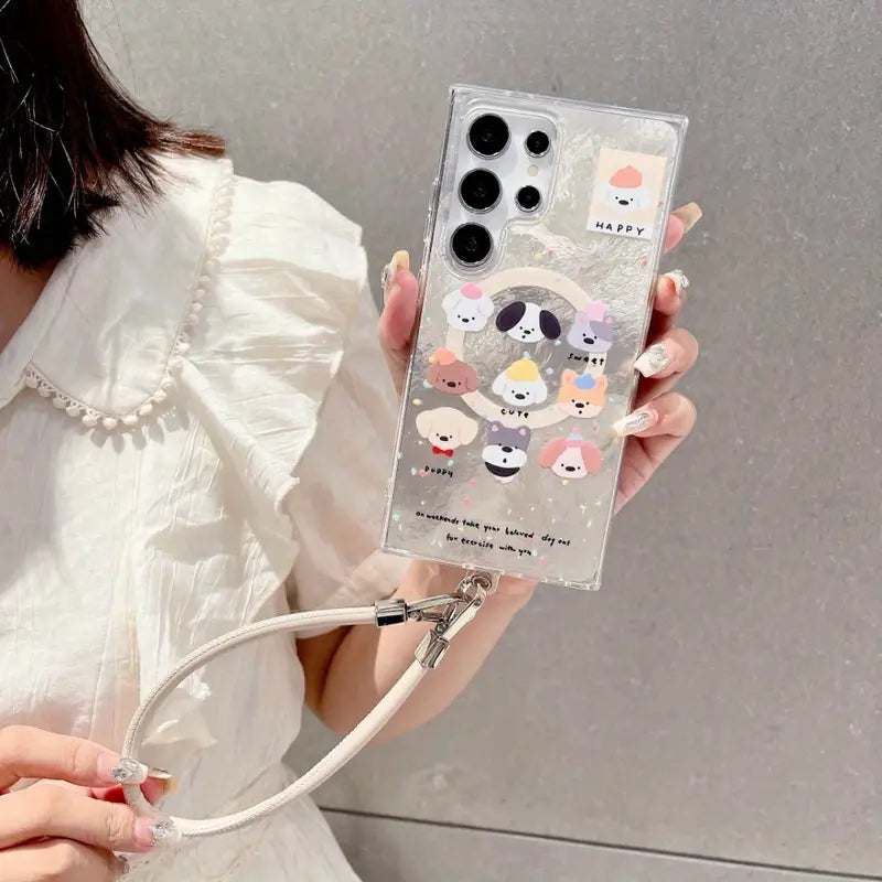 Add some puppy playfulness to your phone with our Cute Cartoon Dog Case with Wrist Strap for Samsung devices! This adorable and quirky case not only protects your phone but also adds a touch of fun to your daily life. With a convenient wrist strap, you can keep your phone close at all times. Woof woof!