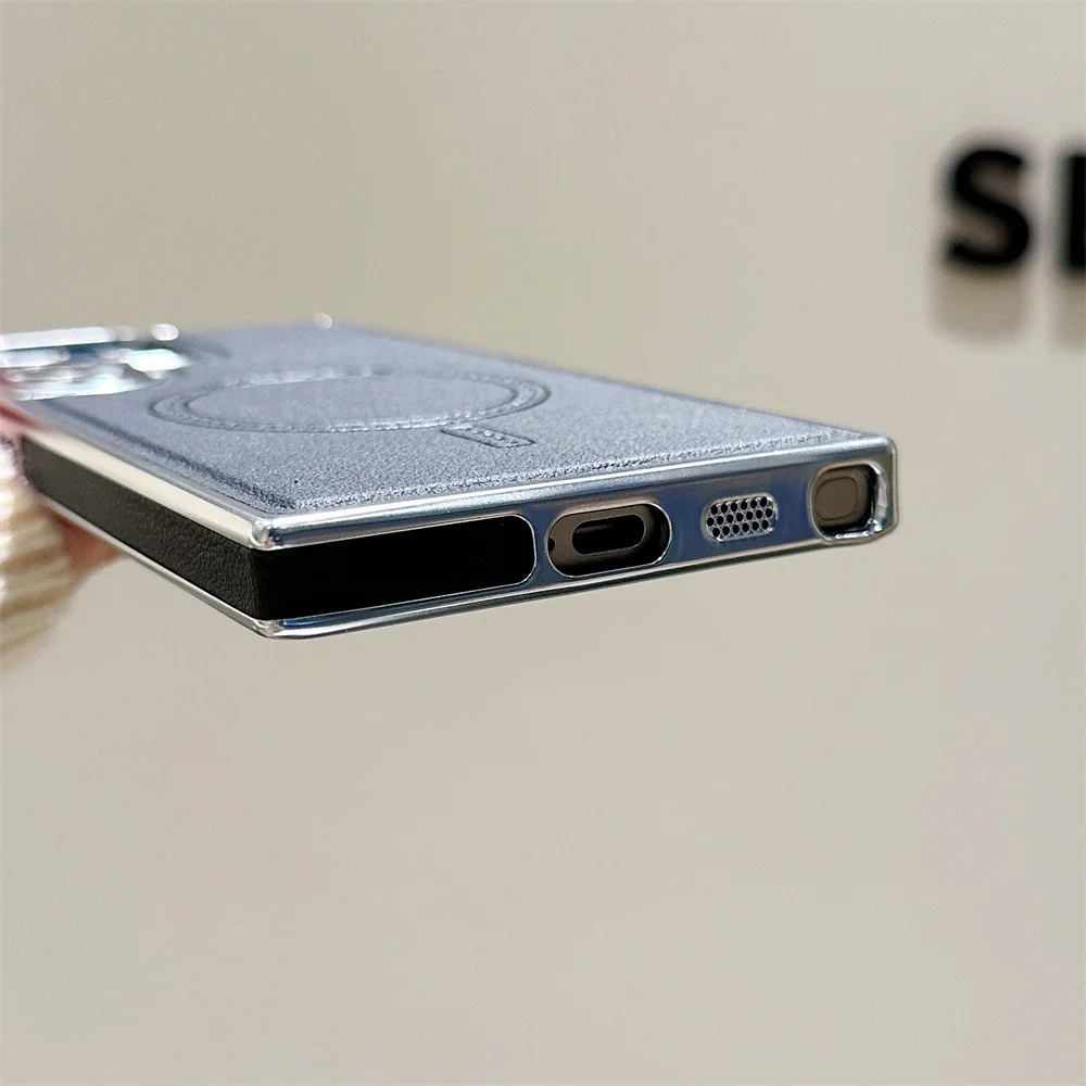 ElectroShield Leather MagSafe Cover – Premium Electroplated Magnetic Case for Samsung