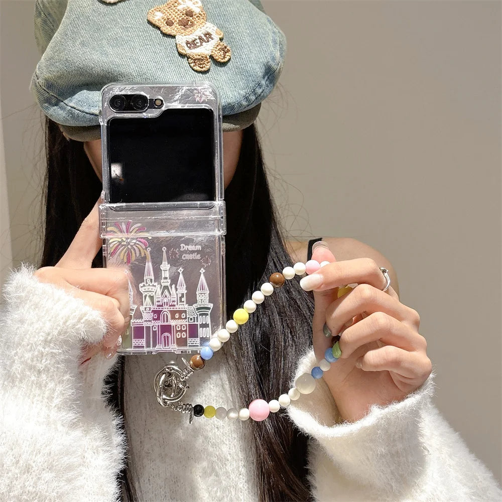 Elegant Dream Castle Fireworks Case! This case features a stunning fireworks display that will light up your phone with dazzling beauty. This allows you to enjoy the full look of your phone while providing strong protection for the hinge and body. Paired with a bead wrist strap, this case combines style, protection, and practicality in one perfect package.