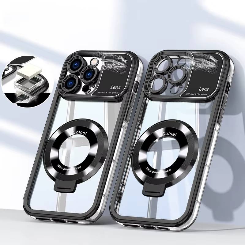 The Elegant Electroplated MagSafe Stand Case offers a fusion of style and practicality. Featuring a polished electroplated finish and a built-in MagSafe stand, it provides premium protection and hands-free convenience in a sleek design.