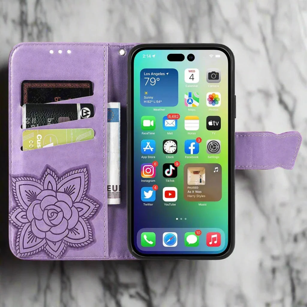 The Embossed Butterfly Leather Case is the perfect blend of elegance and functionality. Featuring a beautifully embossed butterfly design, this case brings a touch of nature-inspired charm to your phone while providing practical benefits.