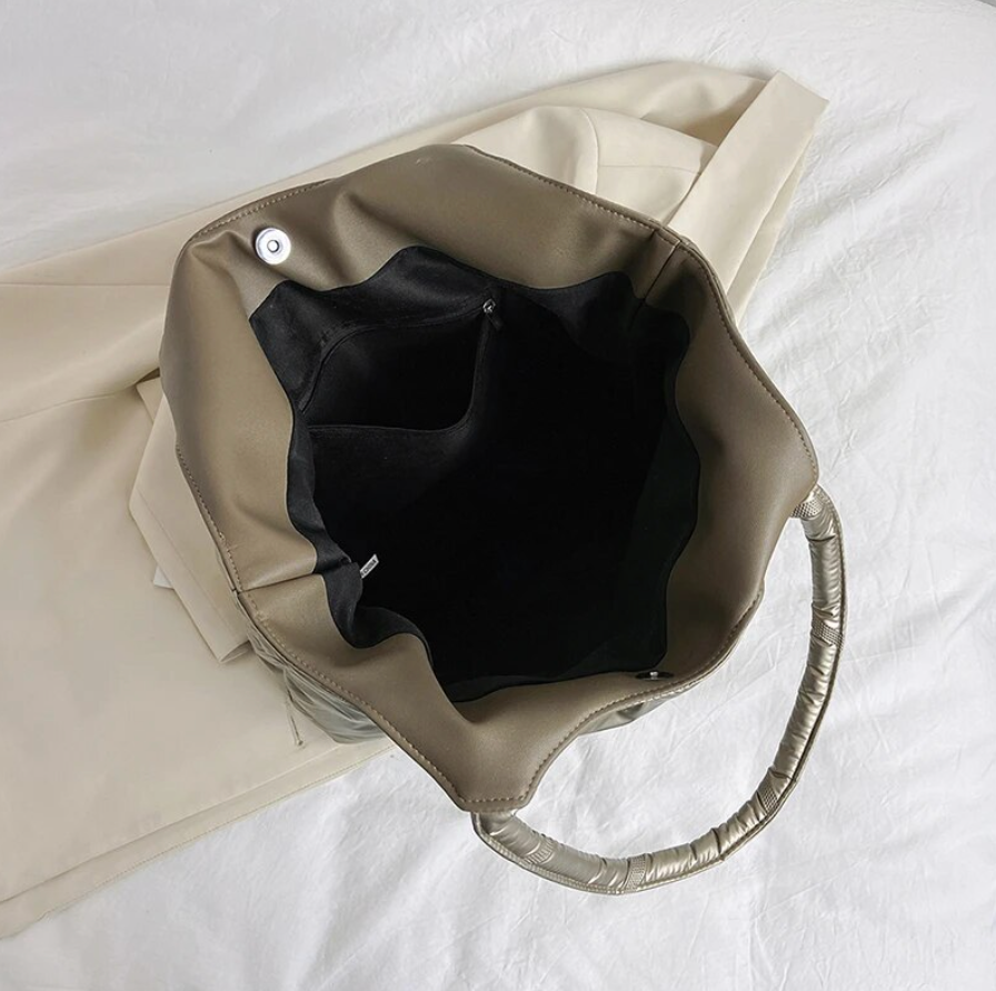 Make a statement with the Feather Tote Quilted Shoulder Bag – where style meets substance in a stunning display of fashion-forward design.
