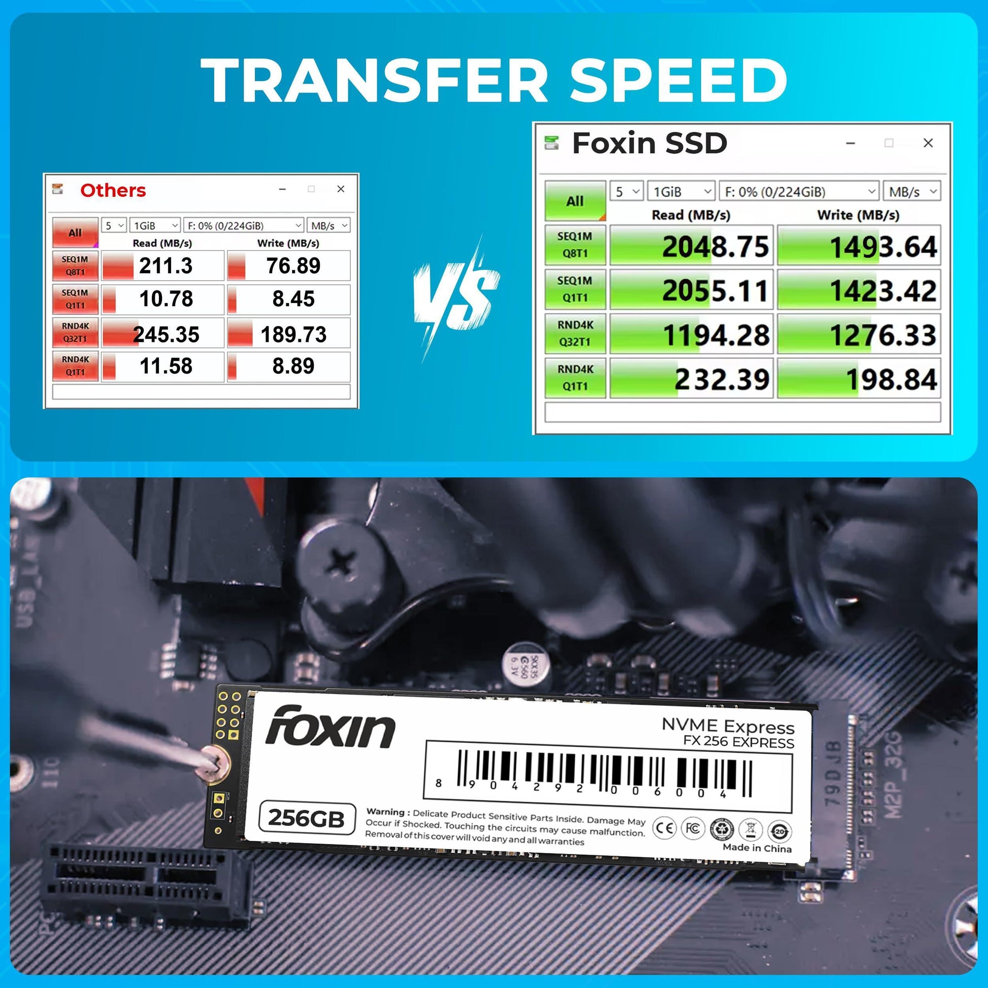 - 🚀 Ultra-Responsive Performance: Experience blazing-fast read speeds up to 2100MB/sec and write speeds up to 1800MB/sec with the Foxin 256GB NVME SSD, perfect for high-performance storage needs.