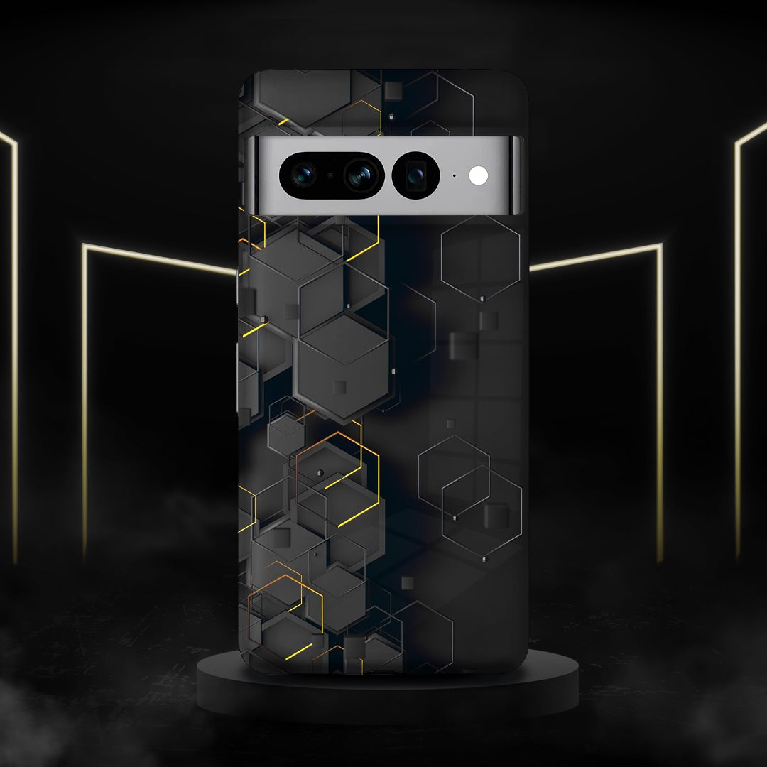 Unveil the perfect blend of style and protection with the Geometric Glow Tech Case. This case features an eye-catching neon hexagon design that brings a futuristic touch to your device.