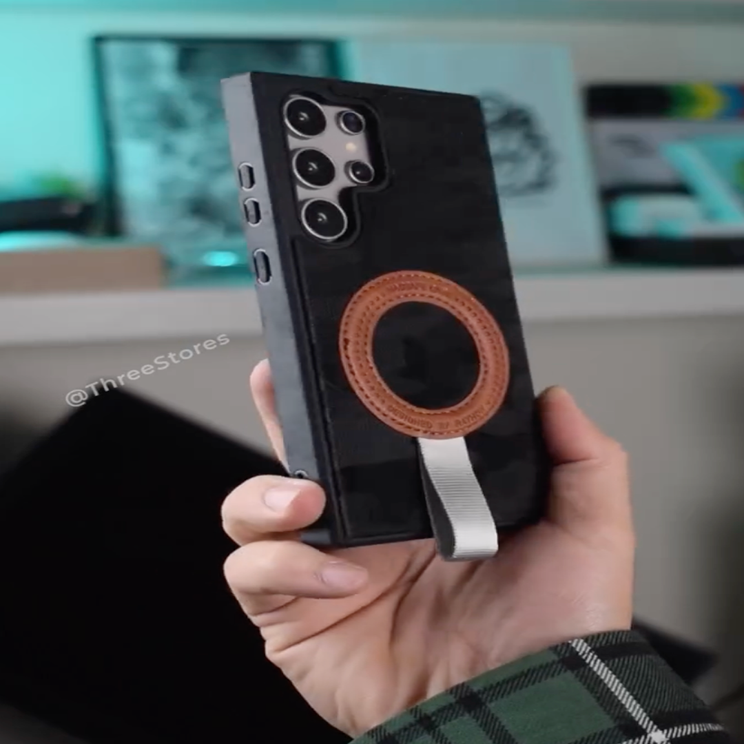 Elevate your phone's style and protection with the Camo Leather Ring Stand Case for the Samsung Galaxy S24 Ultra. This case seamlessly blends rugged functionality with premium design, perfect for those who demand both durability and sophistication.