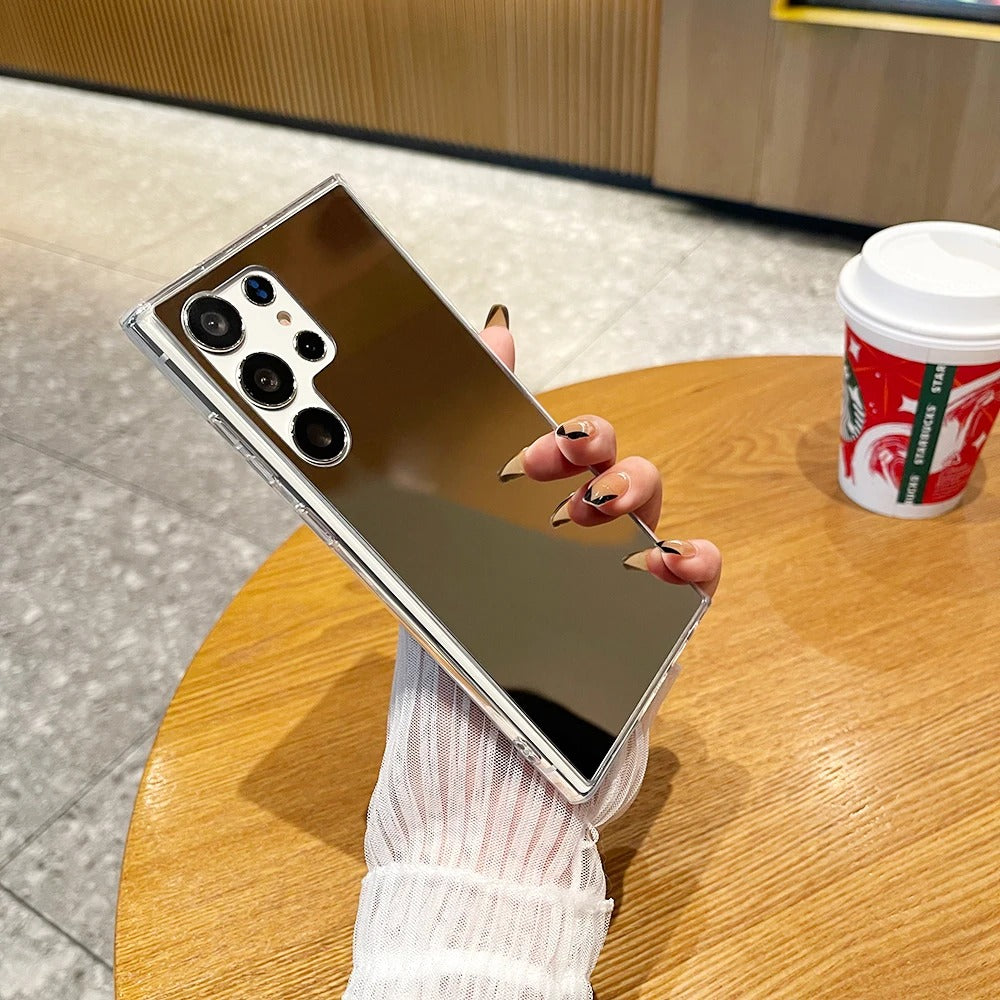 Where sophistication meets functionality in a stunning blend of glamour and practicality. This luxurious case is designed to redefine your Samsung experience with a built-in makeup mirror, elevating your on-the-go beauty routine.