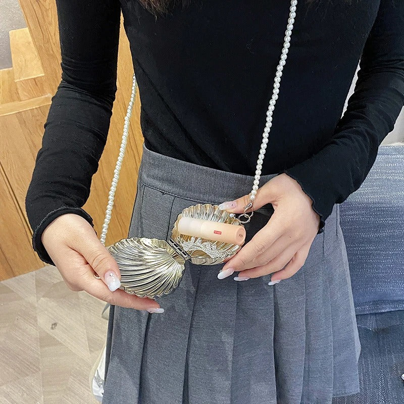 Glamour Mini Shell Pearl Chain Crossbody Bag