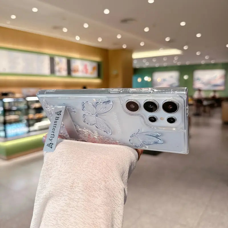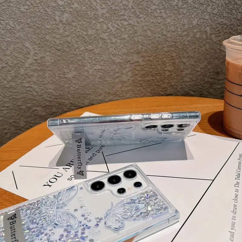 Add a touch of sparkle to your Samsung Galaxyย with this stunning Glitter Butterfly Quicksand Phone Case. Designed to dazzle, this case features a mesmerizing liquid glitter effect with floating butterflies, creating a dynamic and eye-catching look. Not just stylish, it also offers excellent protection against scratches, bumps, and daily wear. The built-in bracket provides hands-free convenience for video watching or video calls, making it both fashionable and functional.