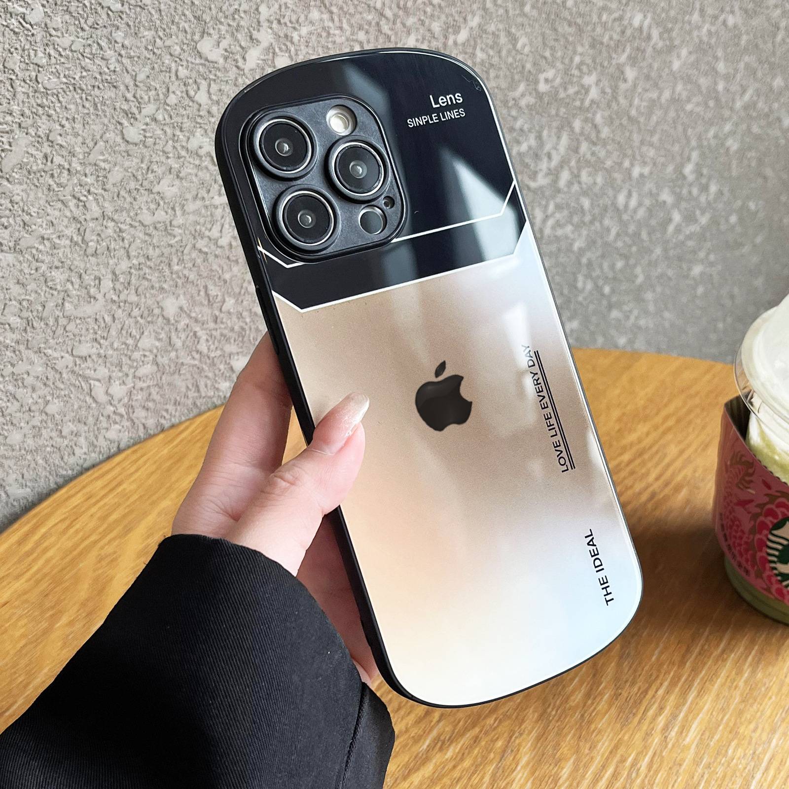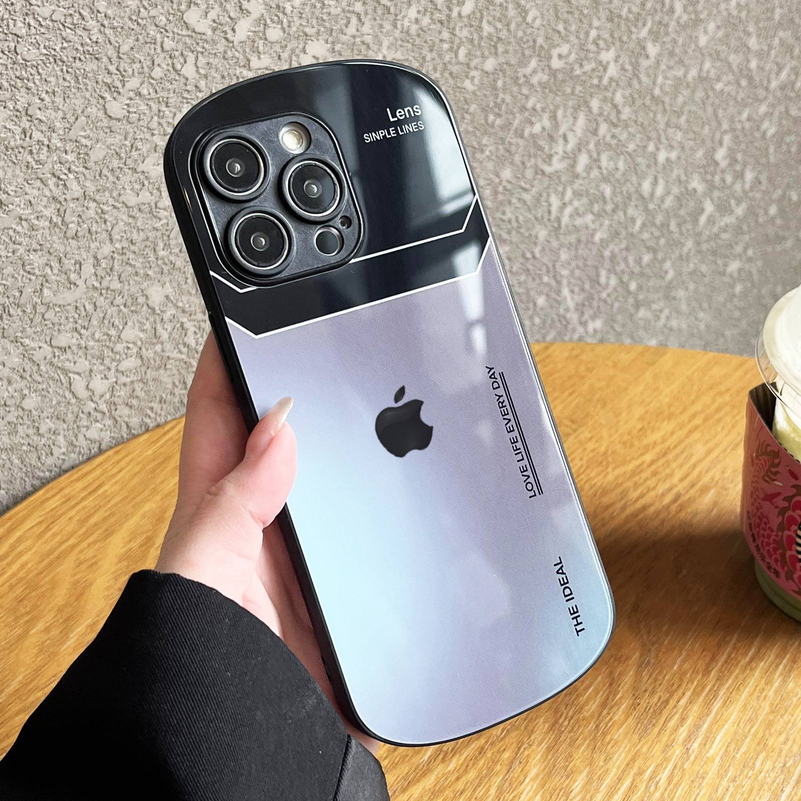 Elevate your iPhone's style with this stunning Gradient Glossy Shield Case. Featuring a sleek mirror finish and a modern gradient design, this case adds a touch of luxury to your device. The top section is designed with a unique camera protection layout labeled "Lens Simple Lines," ensuring your lenses are safe from scratches.