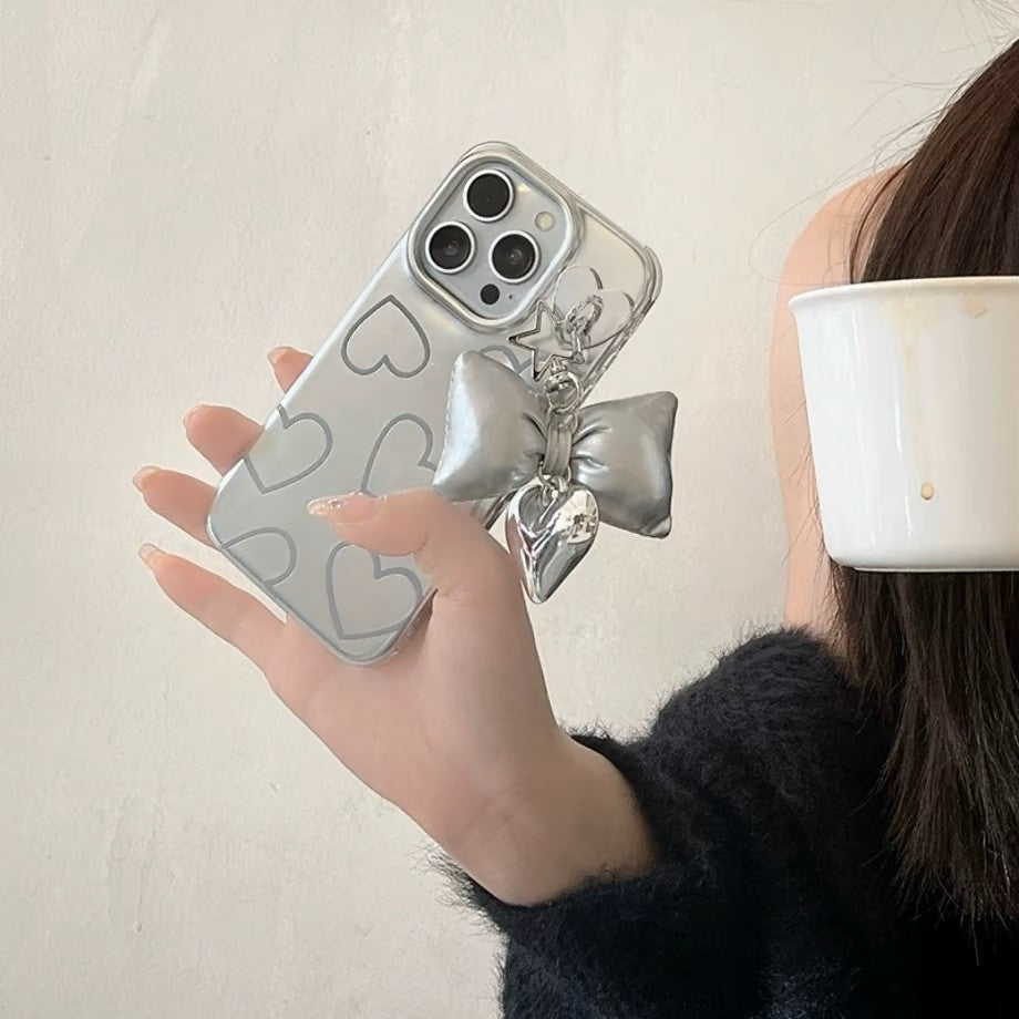 Add a touch of elegance and fun to your everyday essentials with this adorable heart-themed phone case. Designed with embossed heart patterns and a charming, metallic heart keychain accent, it’s the perfect accessory for stylish girls who love to stand out.