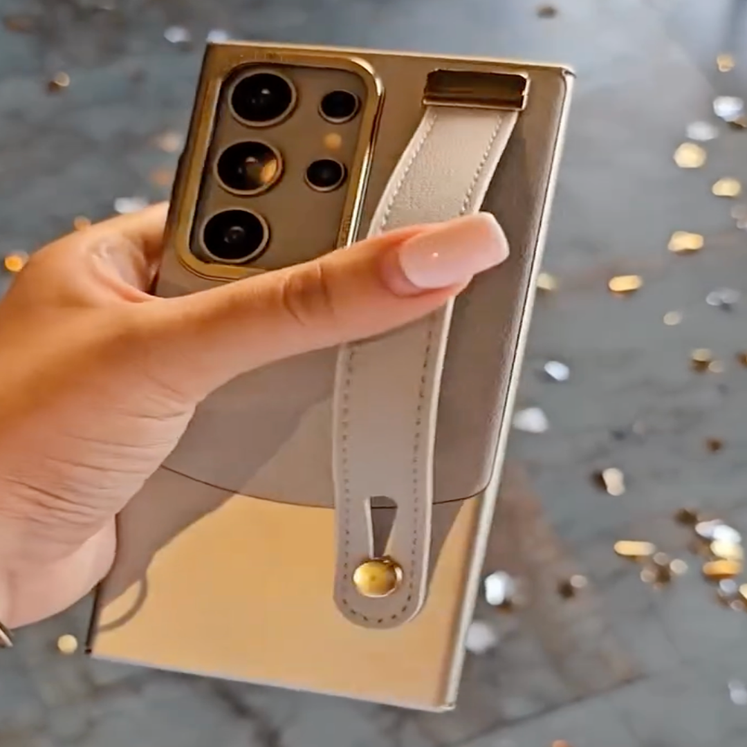The Luxury Leather Wristband Case offers premium protection and functionality for your Samsung device. Crafted with high-quality leather, this case provides a sophisticated look while offering all-around protection. The built-in wrist strap adds extra convenience, making it easy to carry your phone securely and stylishly wherever you go. Whether for everyday use or a night out, this case combines luxury, protection, and practicality.