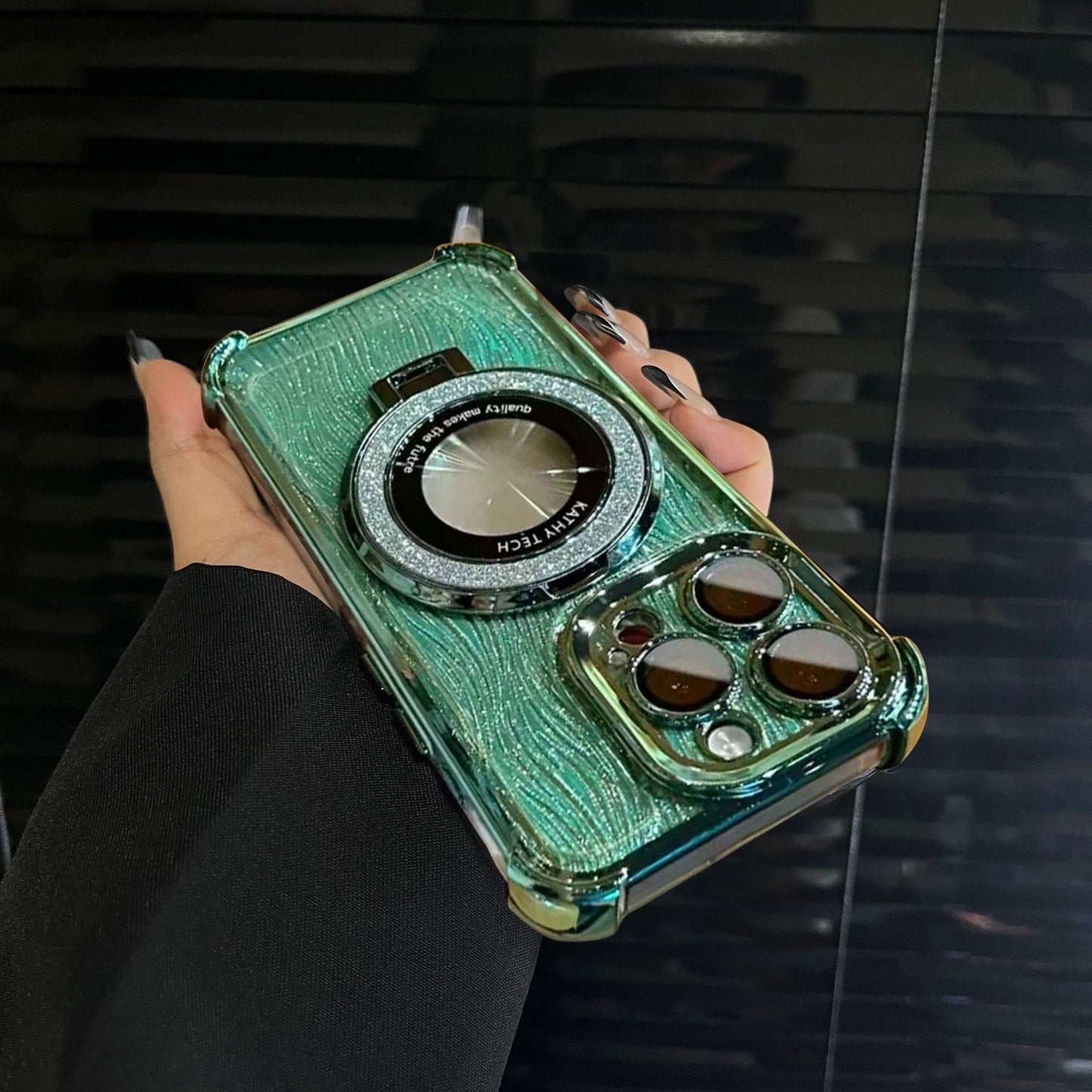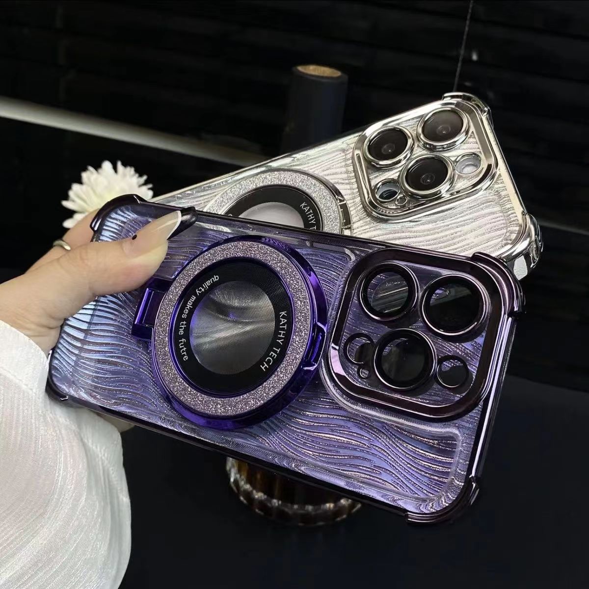 The Infused Glittering Magnetic Stand Case combines glamour and functionality, featuring a shimmering glitter design and a built-in magnetic stand. This stylish case not only protects your phone but also offers hands-free convenience for watching videos or video calls. Elevate your device's look while enjoying practical benefits.