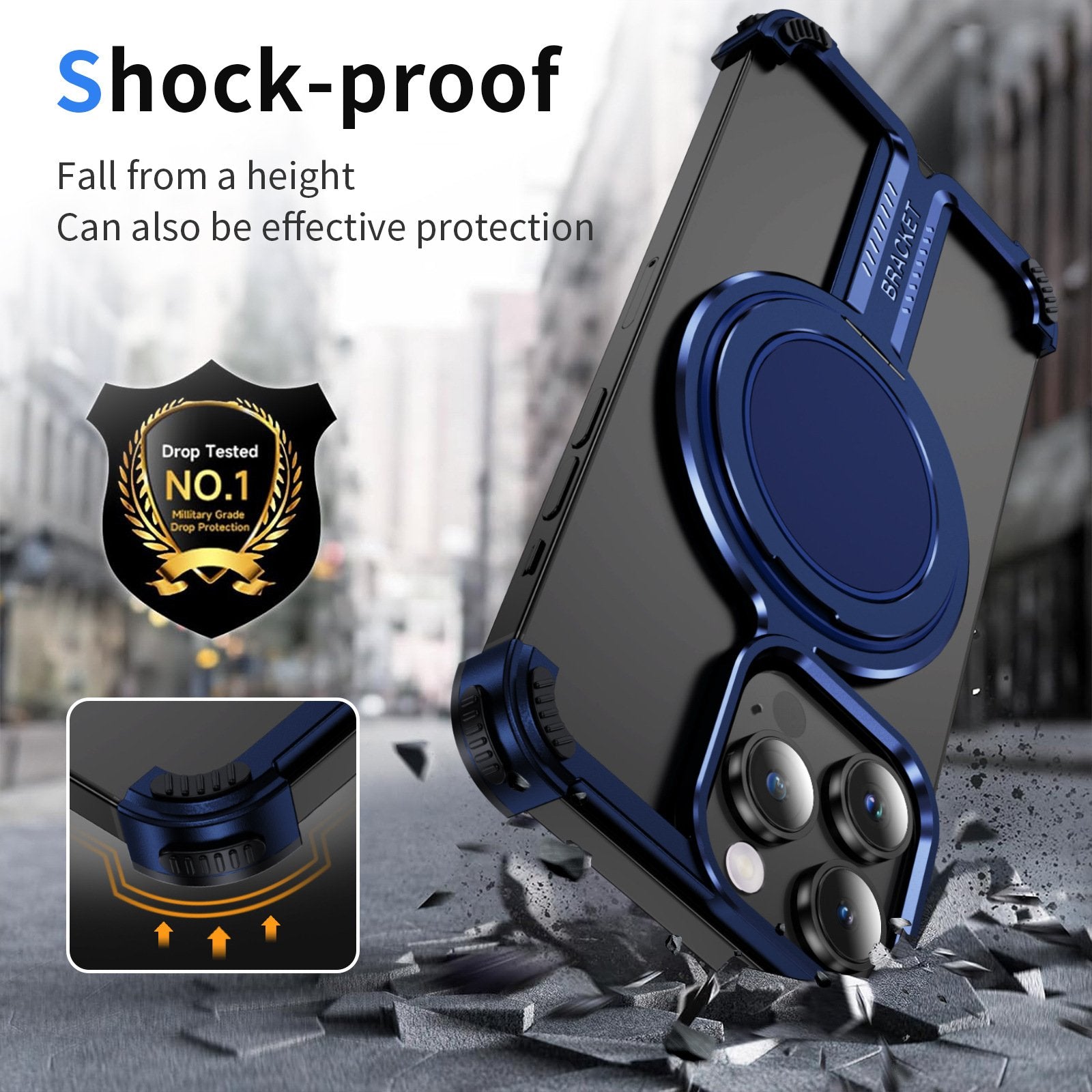 Introducing the Ingenious Anti-Fall Bracket Frame Case, a fusion of cutting-edge design and superior protection. Crafted with a cross-border titanium alloy bone structure, this case provides an unparalleled blend of durability and innovation. Its hidden bracket offers discreet functionality, ensuring your phone remains stylish and secure.