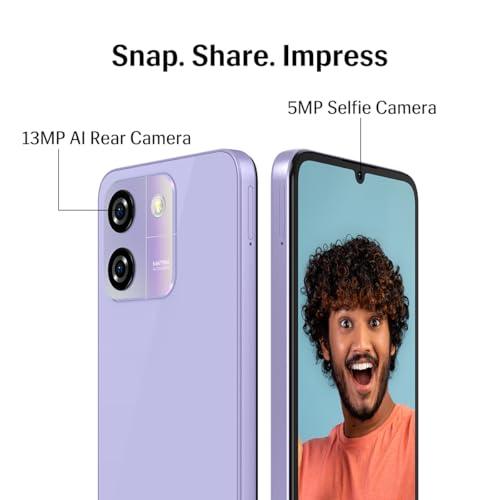 Lava O3 (Glossy Lavender, 4 GB RAM, 64 GB Storage) | Biggest 6.75" HD+ Display | 13MP AI Dual Rear Camera | 5000 mAh Battery | Secure Face Unlock | Fingerprint Reader | Charger & Phone-Cover in Box