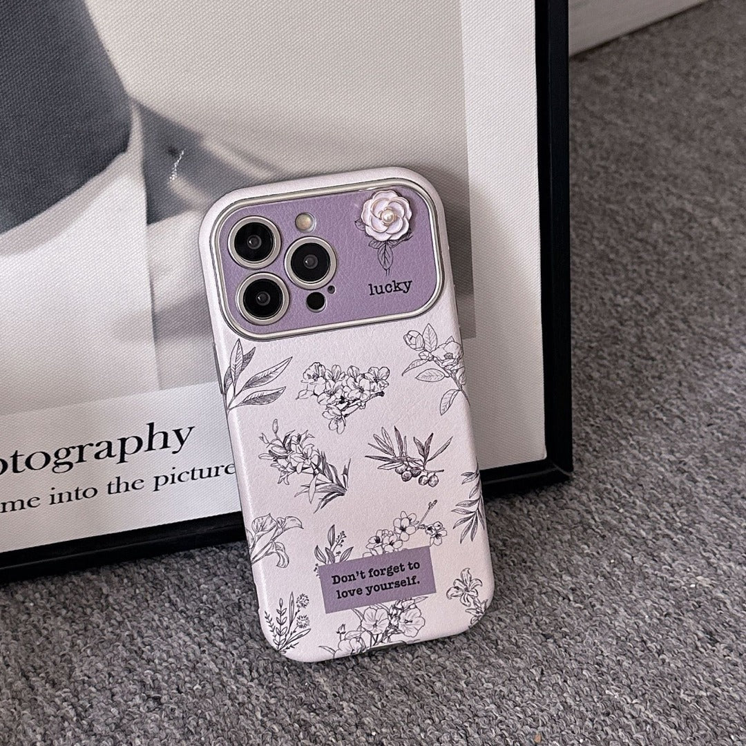 Introducing a stylish phone case with delicate flower design and a reminder to "love yourself." Perfect blend of beauty and protection.