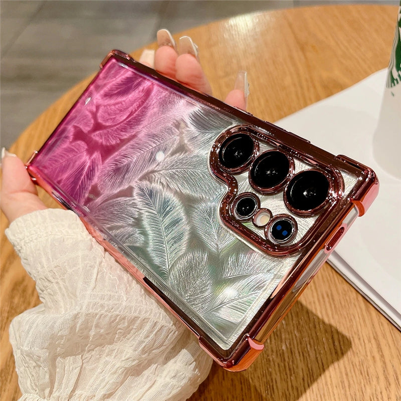 Add a touch of elegance and sophistication to your Samsung device with the Luminous Feather Case. Designed with an iridescent feather pattern, this case offers a radiant shimmer that catches the light beautifully from every angle.
