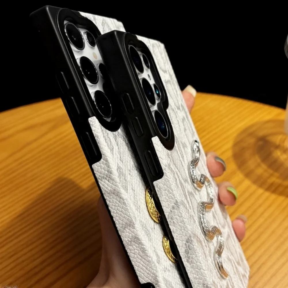 Elevate your phone's style with the Luxury 3D Gold Snake Plating Leather Case for Samsung. This case features a bold 3D gold snake design with premium leather, exuding elegance and sophistication. Crafted for both aesthetics and protection, it shields your phone from scratches, bumps, and daily wear while making a striking fashion statement. The luxurious plating and sleek leather texture create a refined look that’s perfect for anyone who loves opulence and bold design.