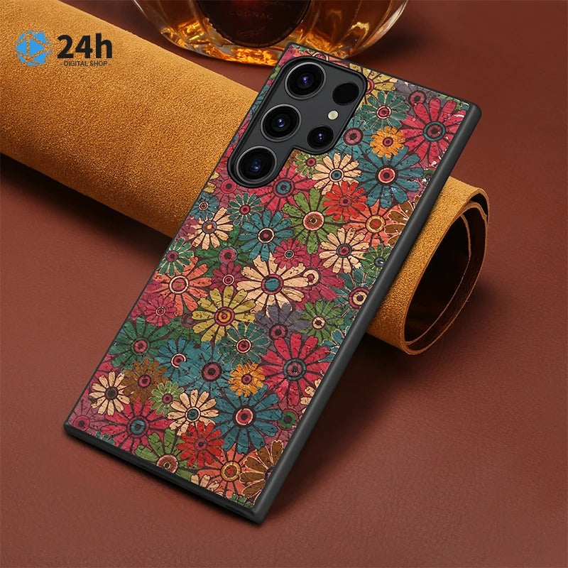 Luxury Cork Cloth Floral Pattern Case - Samsung