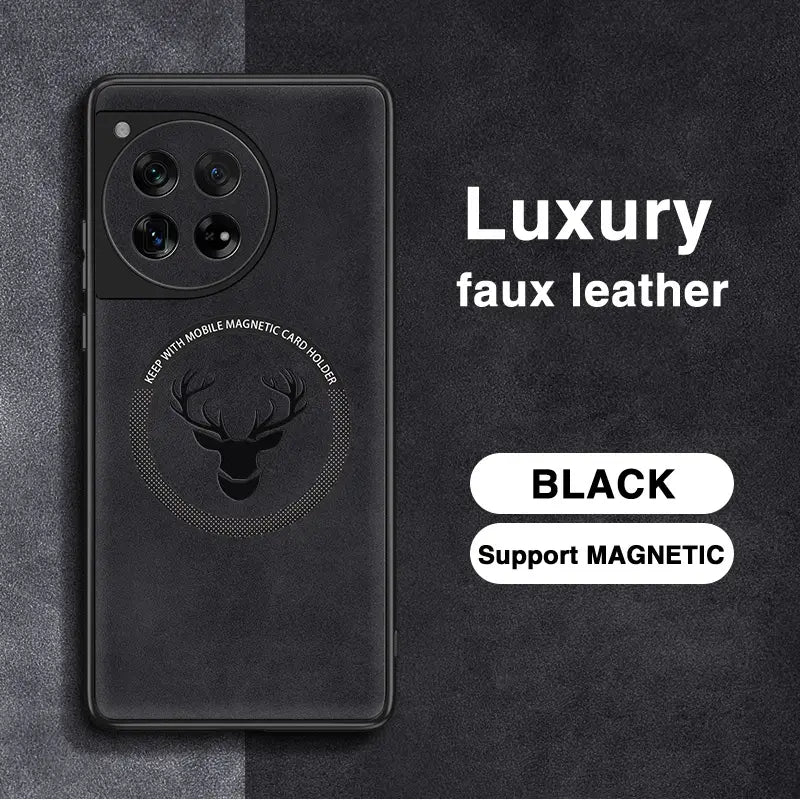 Elevate the style and protection of your smartphone with this luxury faux leather case. Designed in sleek black, it exudes sophistication while offering practical features like magnetic support for compatible cardholders and accessories. The embossed deer design adds a touch of elegance, making it perfect for those who appreciate both form and function.