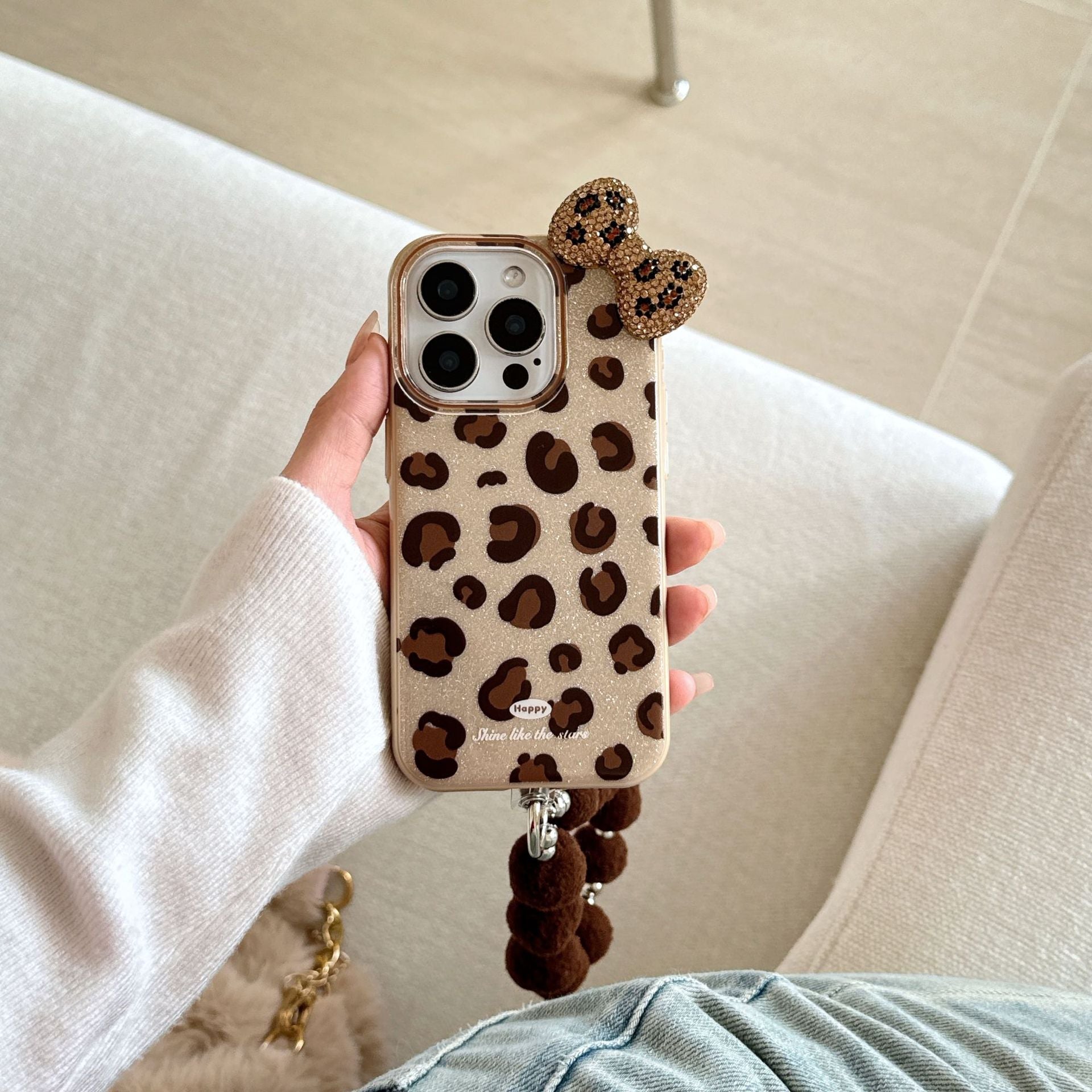 Unleash your bold and stylish side with this glamorous phone case! Featuring a dazzling glitter leopard print, an elegant bow, and a chic detachable chain strap, this case is the ultimate accessory for girls who love to shine. Designed to combine fashion and functionality, it's perfect for carrying your phone in style.