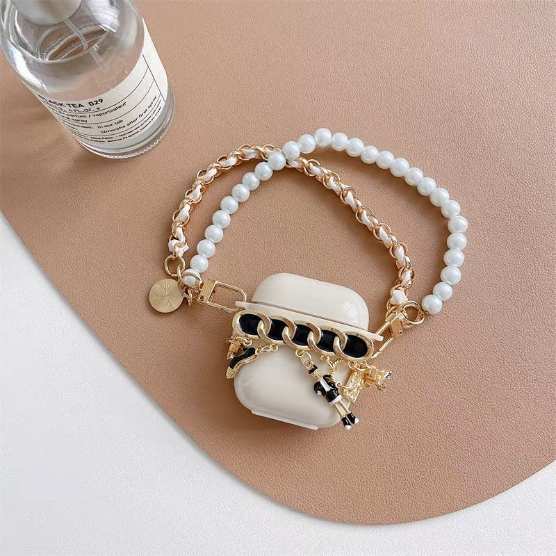 The Luxury Pearl Chain AirPods Case combines elegance and functionality with its exquisite pearl detailing and chic design.
