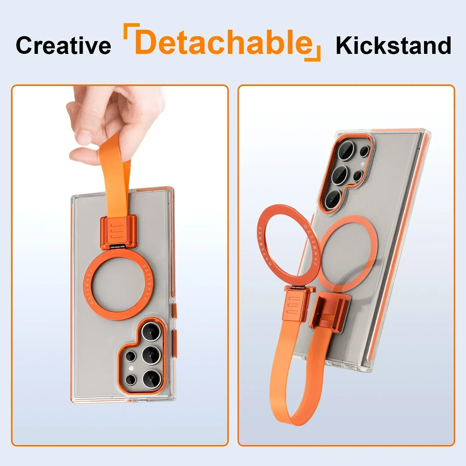 Step up your phone protection game with the Mag Guard Kickstand Armor Case, specially designed for Samsung phones. This case combines heavy-duty protection with versatile functionality.
