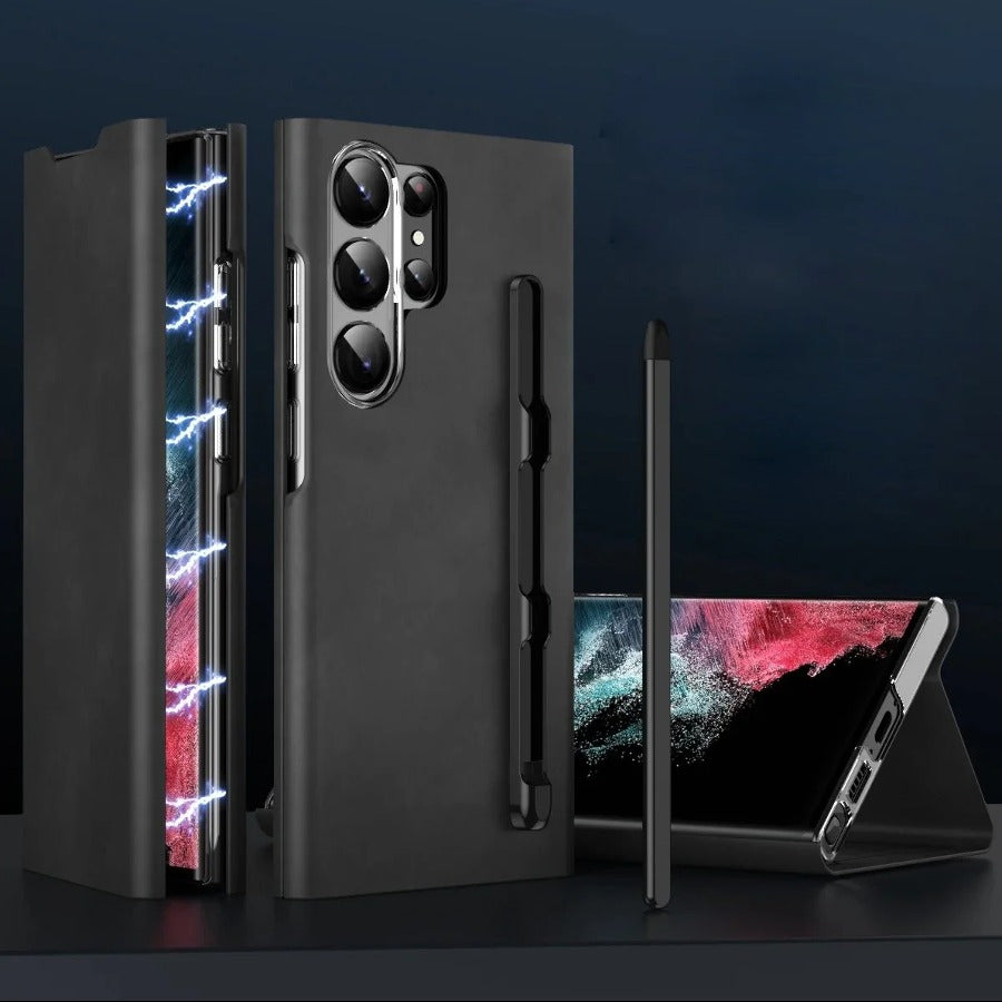 Elevate your Samsung device with the Magnetic Wallet Genuine Leather S-Pen Slot Case, a sophisticated blend of style and functionality. Crafted with precision and premium materials, this case offers both reliable protection and convenient storage for your essentials.