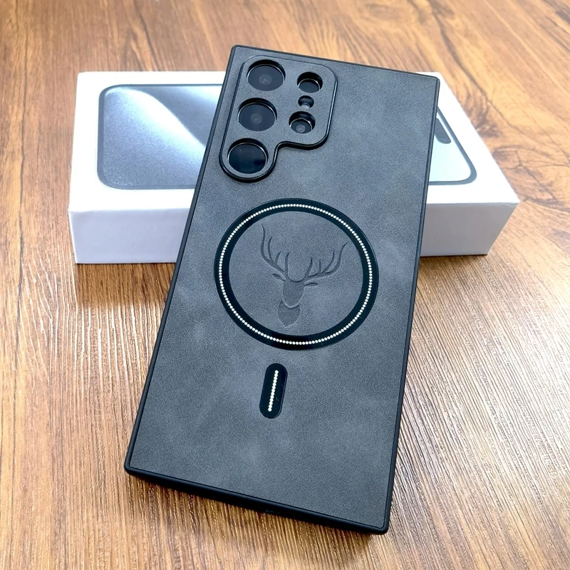 Elevate your phone's protection and style with the MagSafe Luxury Leather Deer Pattern Case for Samsung. Crafted from premium PU leather with a textured deer design, this case combines elegance with durability. The integrated MagSafe magnets ensure effortless attachment to wireless chargers and other MagSafe accessories, while the sturdy construction provides full coverage and protection from drops and scratches.