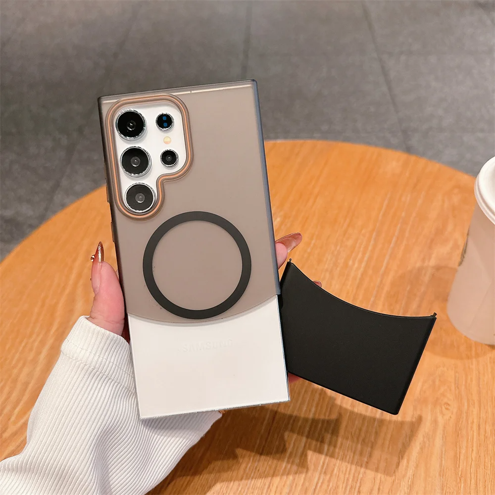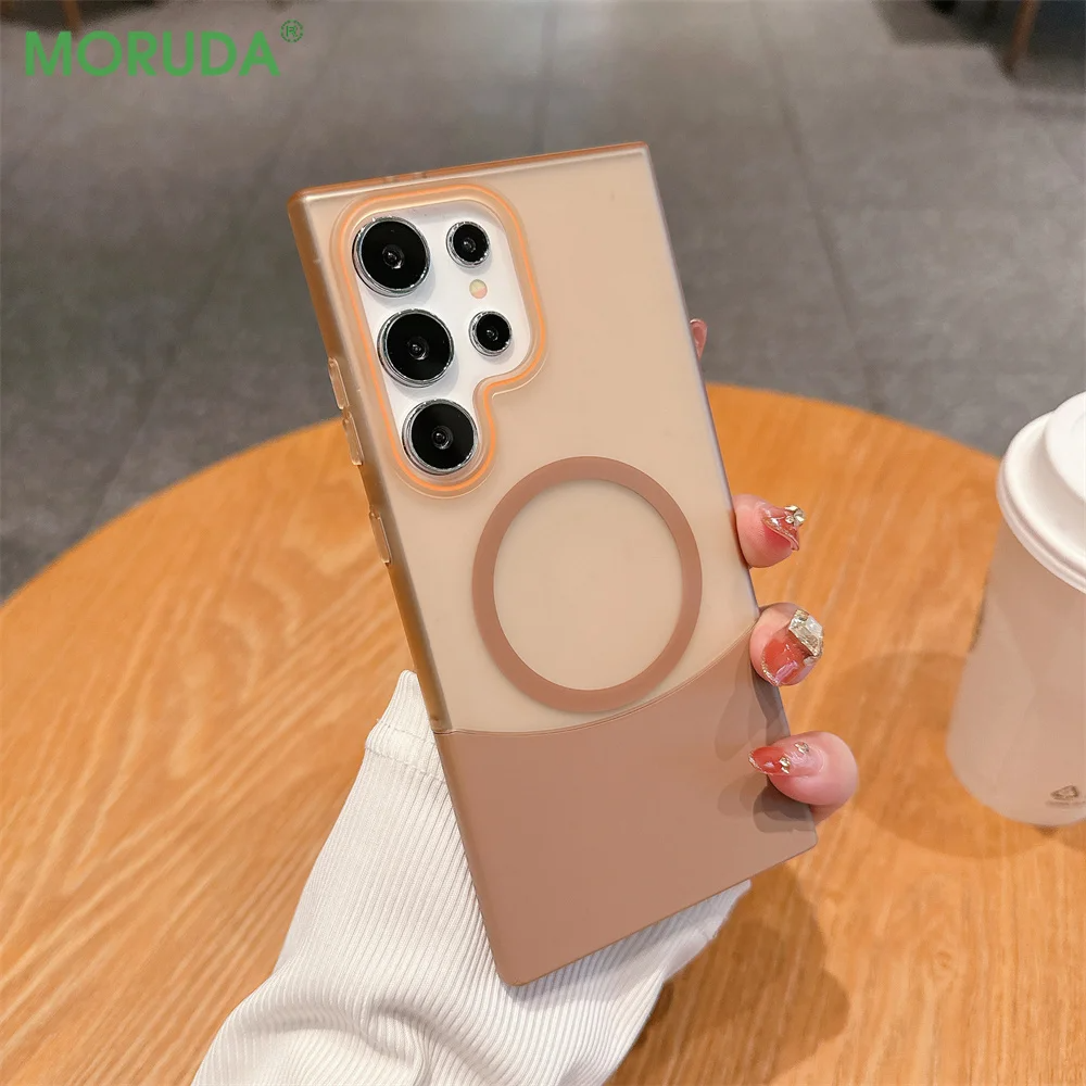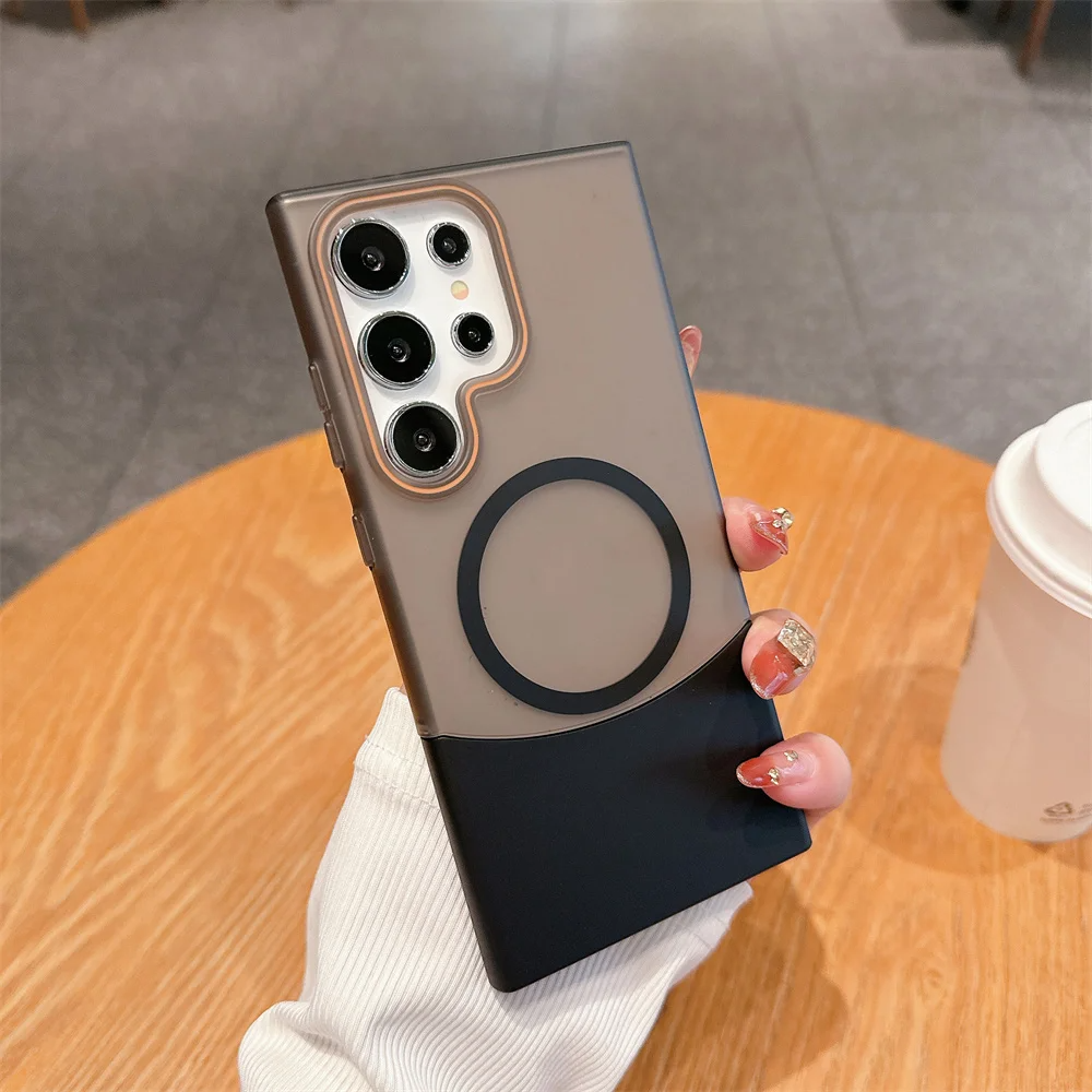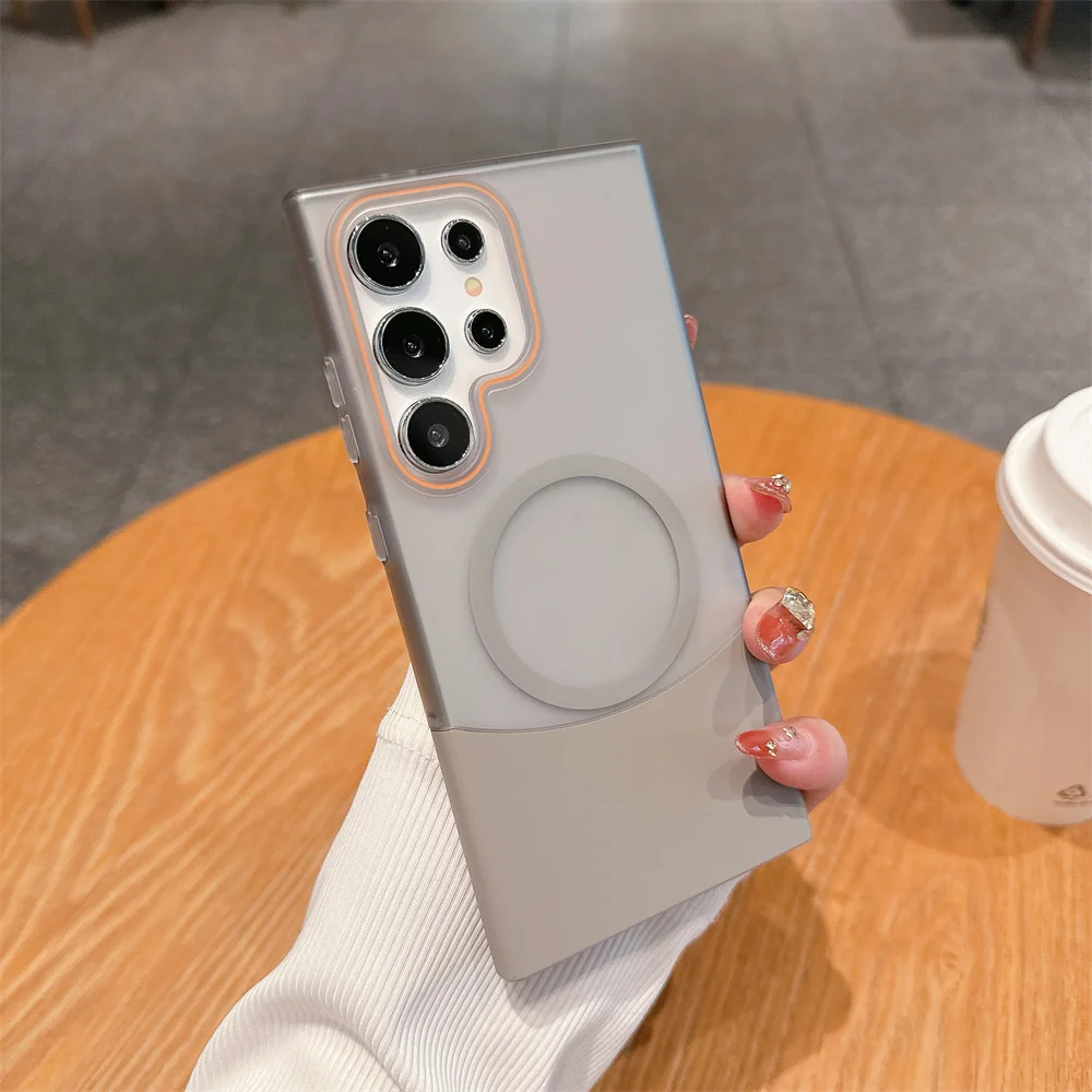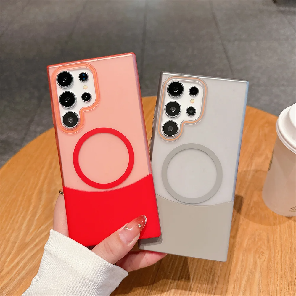Elevate your phone's style with the Matte Splicing Hit Color MagSafe Case for Samsung. This case combines bold, contrasting colors with a matte finish for a sleek and modern look. Designed with MagSafe compatibility, it seamlessly attaches to magnetic chargers and accessories, ensuring convenience without compromising on style. The durable, shock-absorbent material provides excellent protection from drops and scratches while maintaining a slim, comfortable profile.