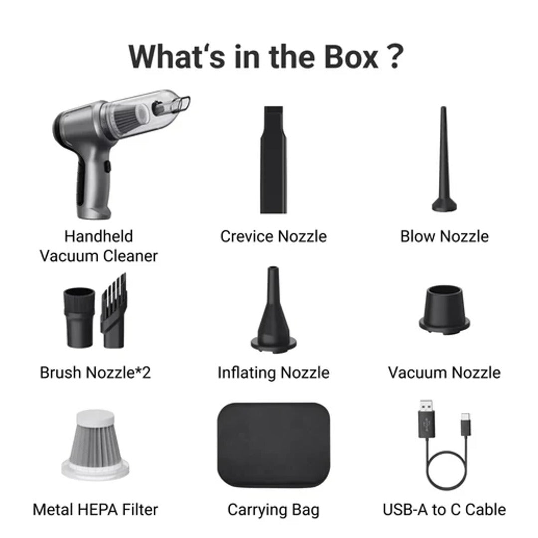 - 4-in-1 Versatility: Use it to remove dust, clean keyboards, inflate outdoor gear, and extract air from storage bags, anytime and anywhere.