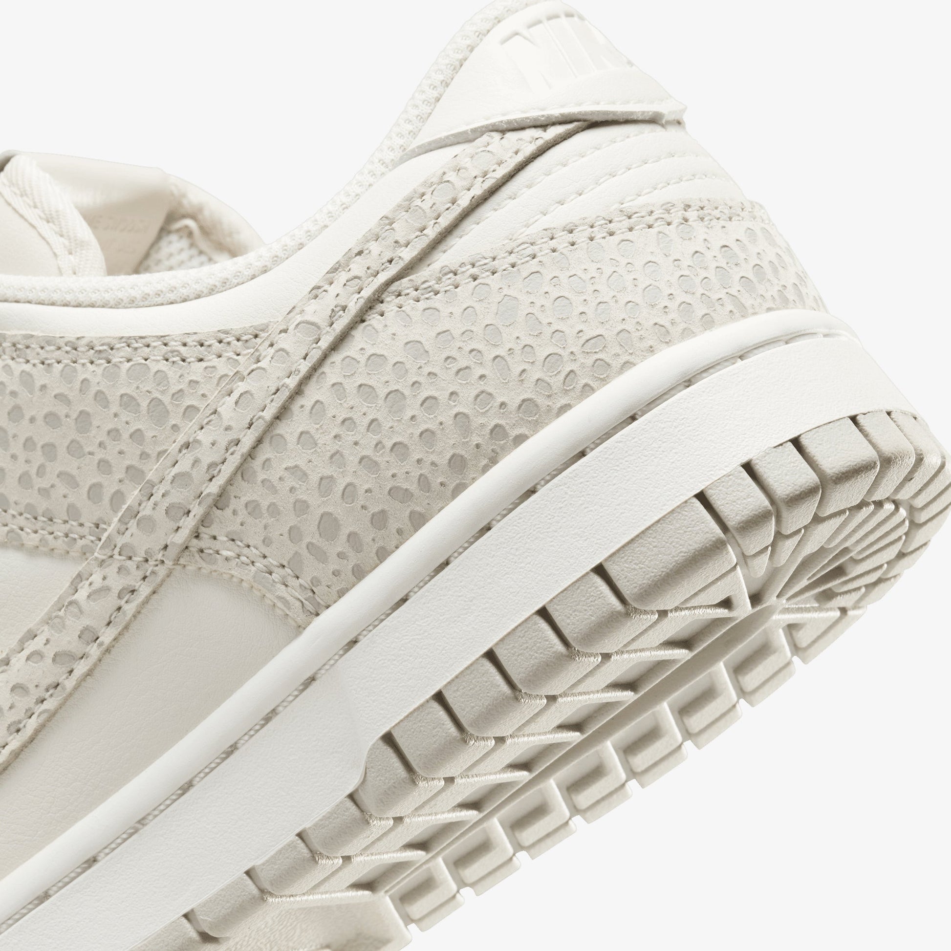 Take a walk on the wild side with our classic Safari print. This Dunk Low combines premium materials with plush padding for game-changing comfort that lasts. It balances textured overlays against a smooth leather upper, plus a radial perforation pattern on the toe box for an elevated finish. The possibilities are endless—how will you wear your Dunks?
