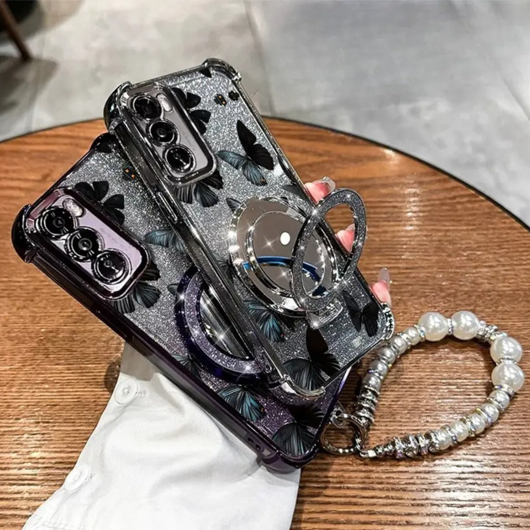 Elevate your phone’s elegance with a built-in mirror and a delicate pearl bracelet handle. The case provides premium protection while adding a touch of luxury to your everyday style.