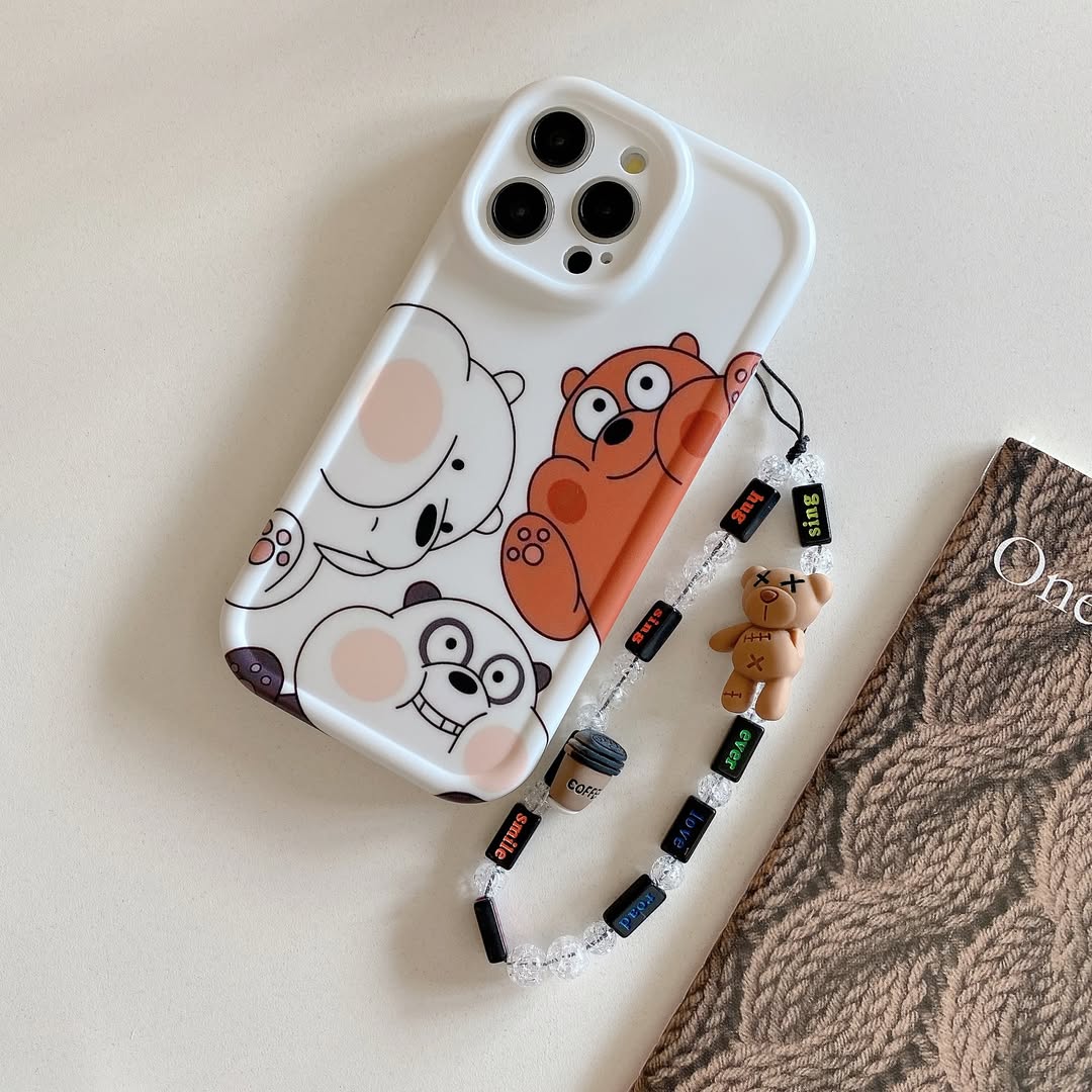 Add a touch of cuteness to your phone with the Playful Hug Squad Bear Charm Case! Featuring adorable cartoon bears in a lovable design, this phone case is the perfect blend of style and protection. The included 3D bear charm and beaded phone strap enhance its charm while offering added functionality.